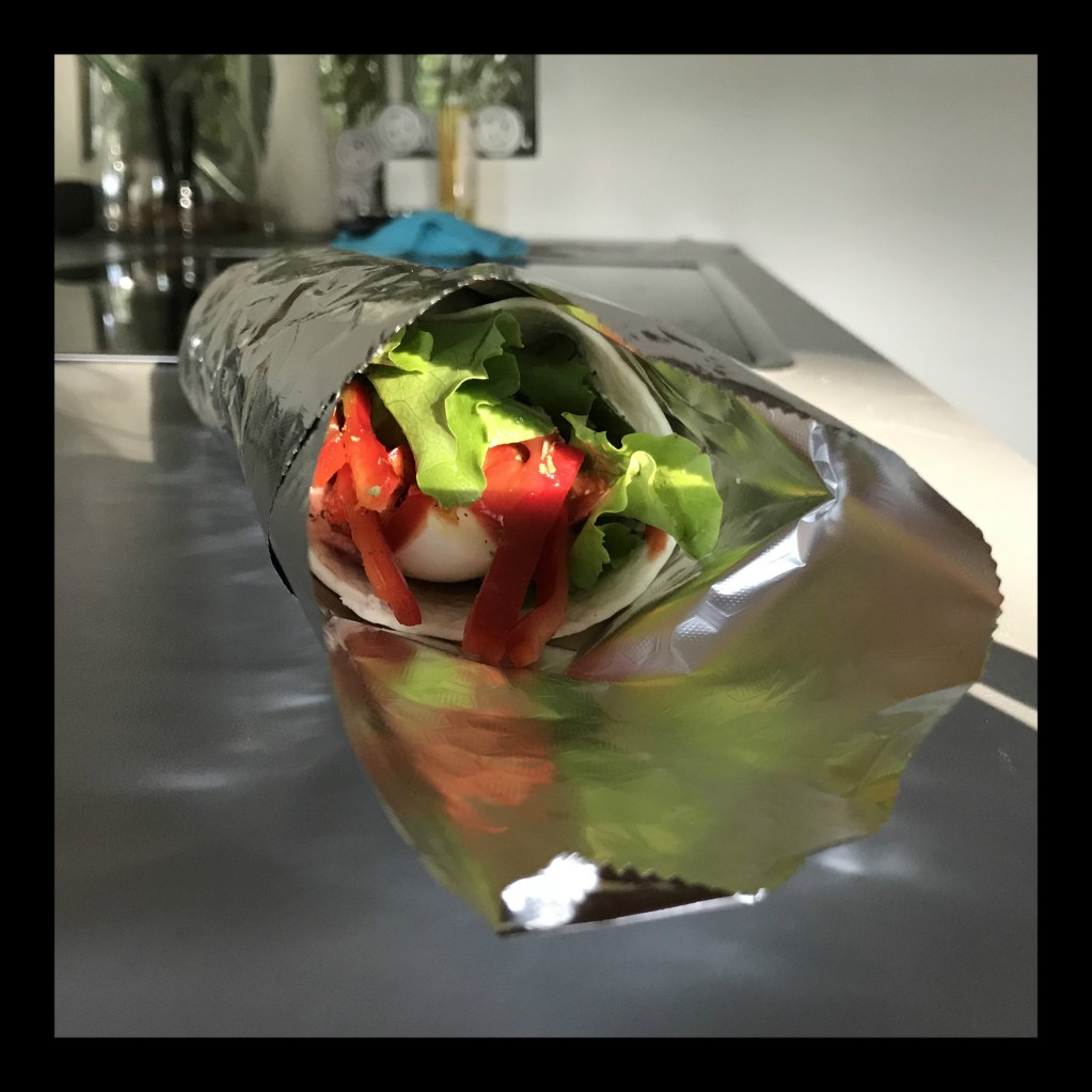 frisch gemahlenem schwarzen Pfeffer würzen, zu einem Wrap fest zusammenrollen und in