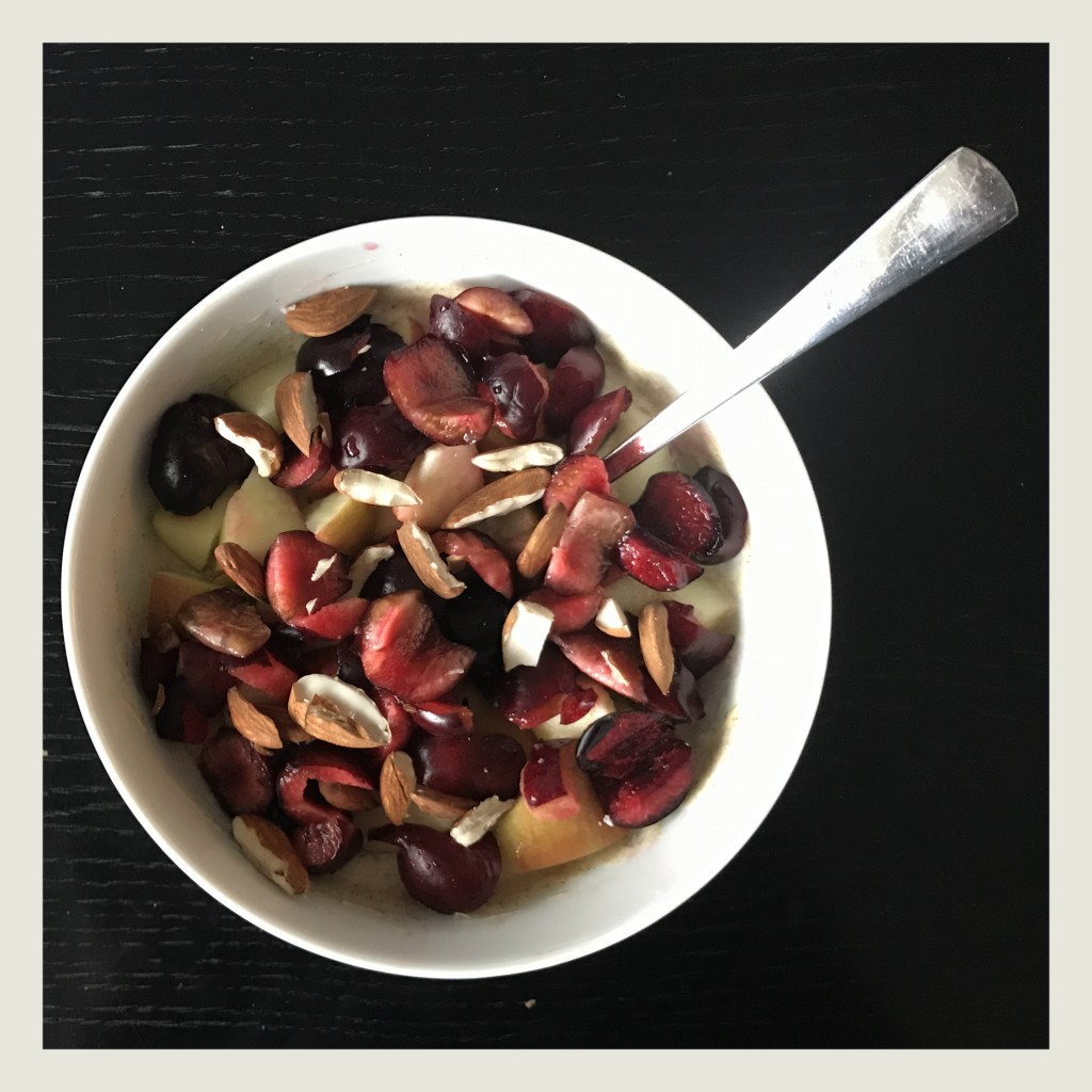 1 Apfel (in kleine Stücke geschnitten) darüber geben und mit