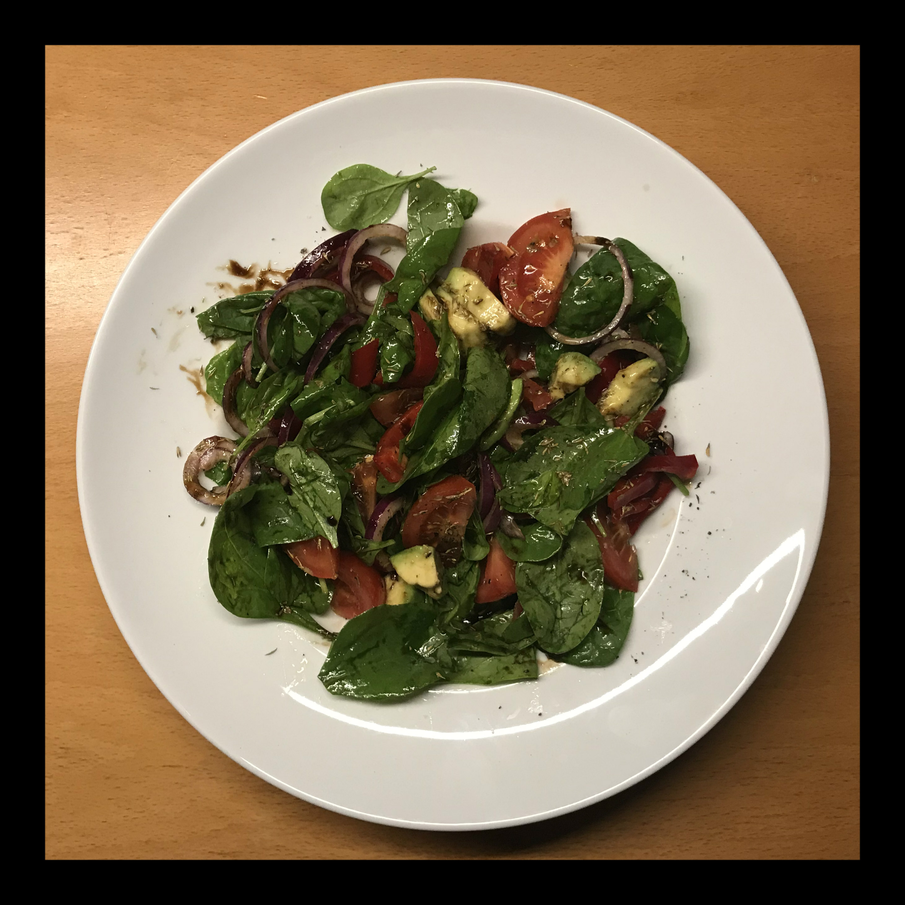 1/2 kl. roten Zwiebel (in feine Ringe geschnitten) zu einem Salat mischen,