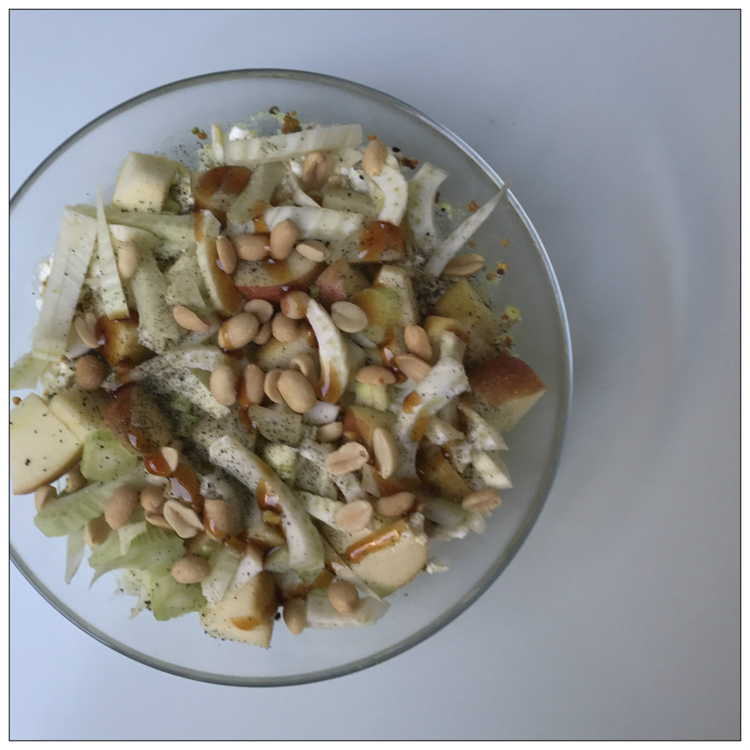 1 Apfel (in kleine Stücke geschnitten) auf den Hüttenkäse geben, mit