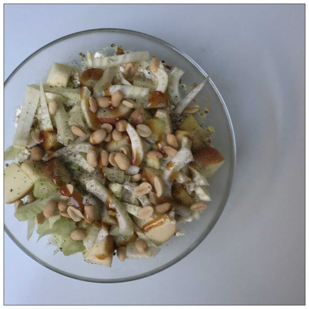 1/4 kleinere Fenchelknolle in dünne Streifen schneiden und zusammen mit