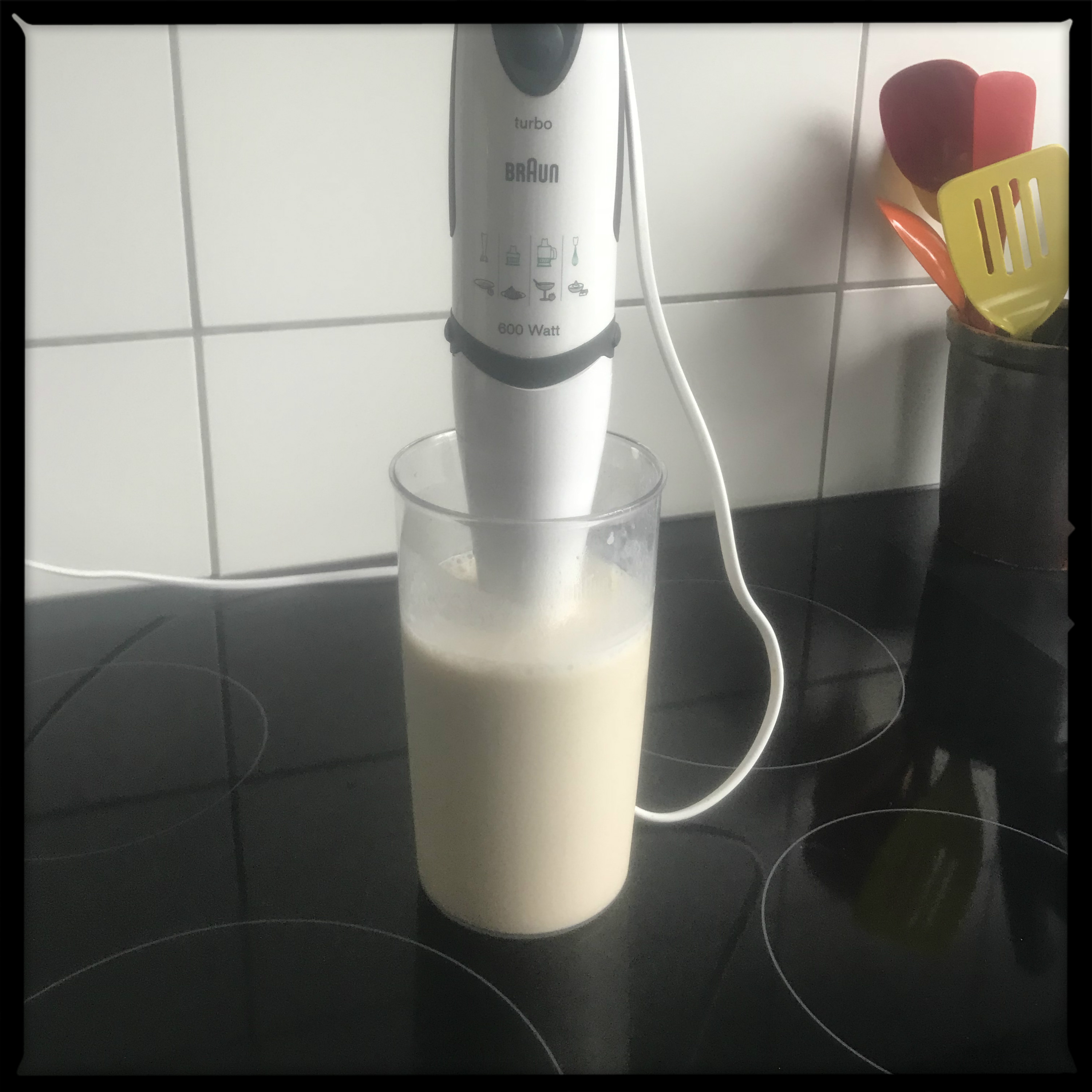 1 reife Banane mit dem Mixstab pürieren,