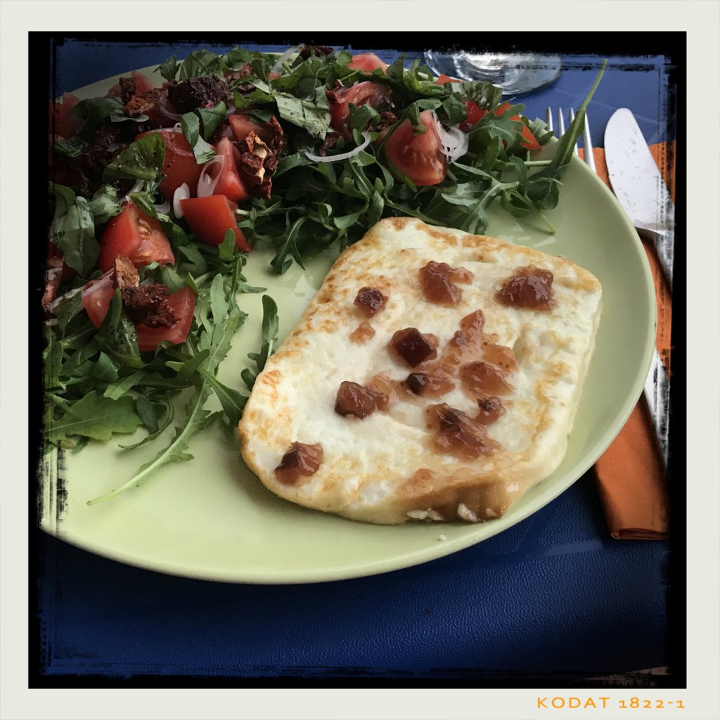 der gebratene Käse gehört zu den spanischen/kanarischen Tapas, mit Salat ist es eine komplette kleine Mahlzeit