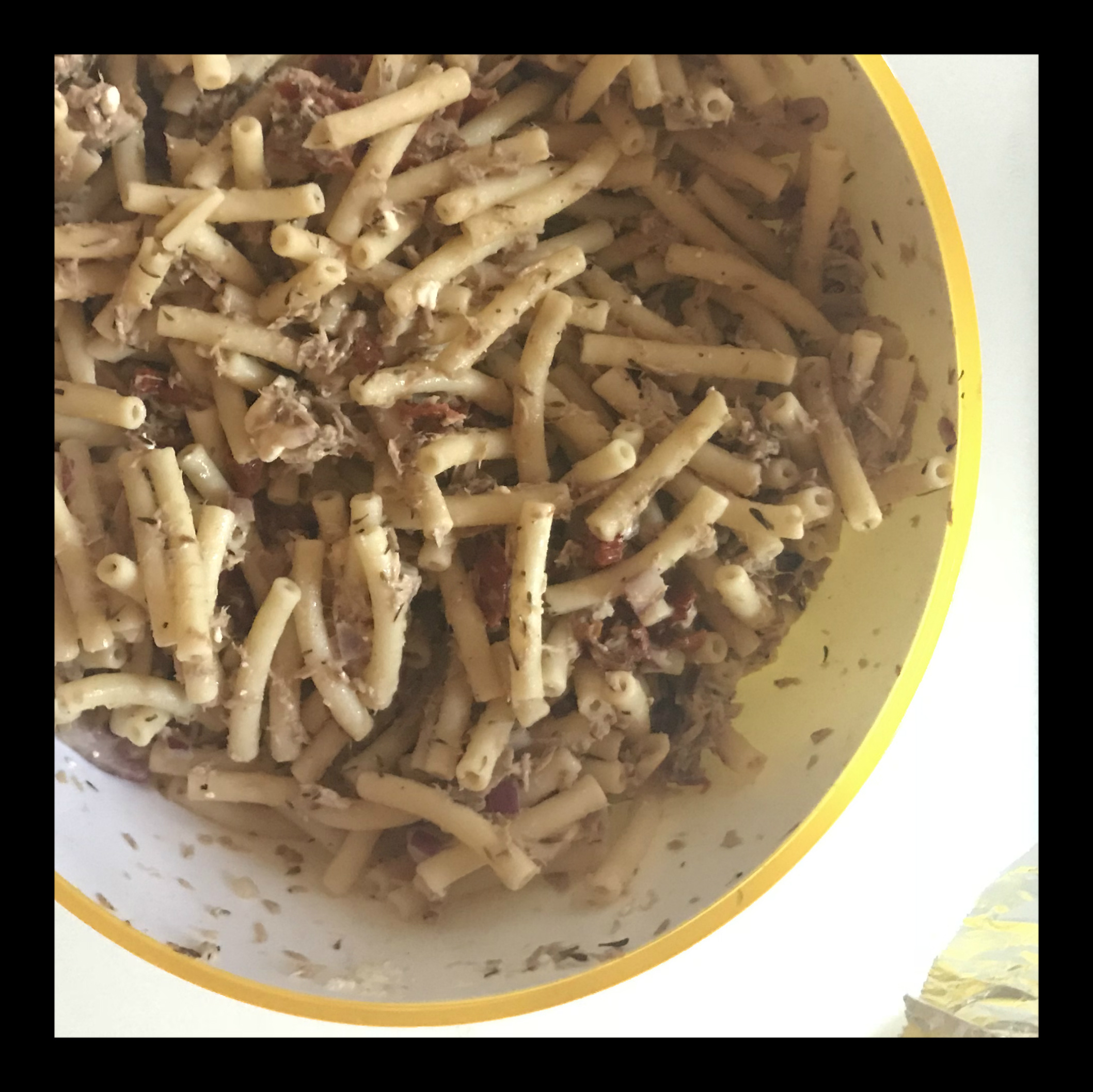 500 g kurze Makkaroni (z. B. Barilla) nach Packungsanweisung in 7 Min. in reichlich