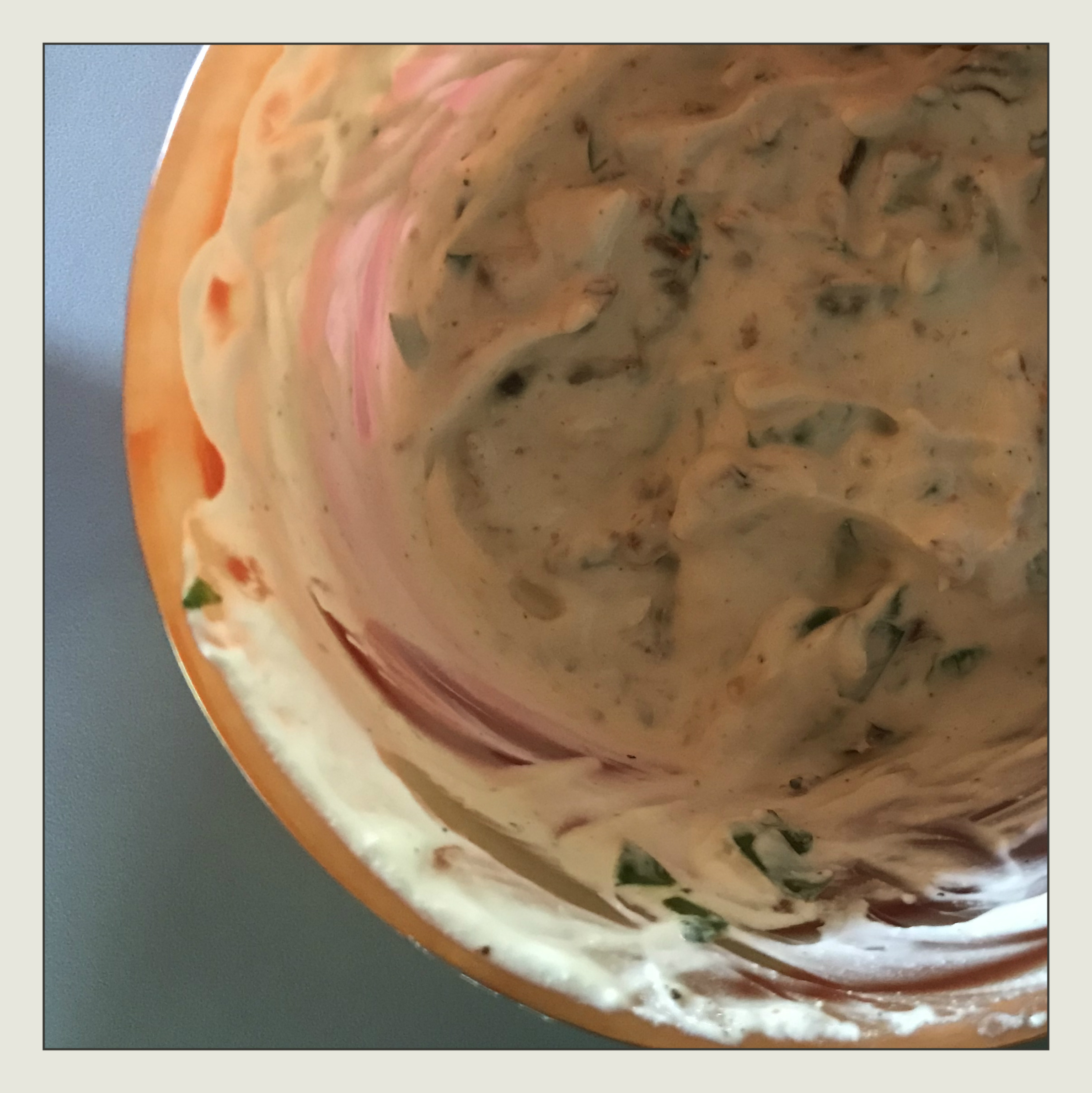 besser schon ein bis zwei Stunden vor dem Verzehr zubereiten, dass der Dip durchziehen kann