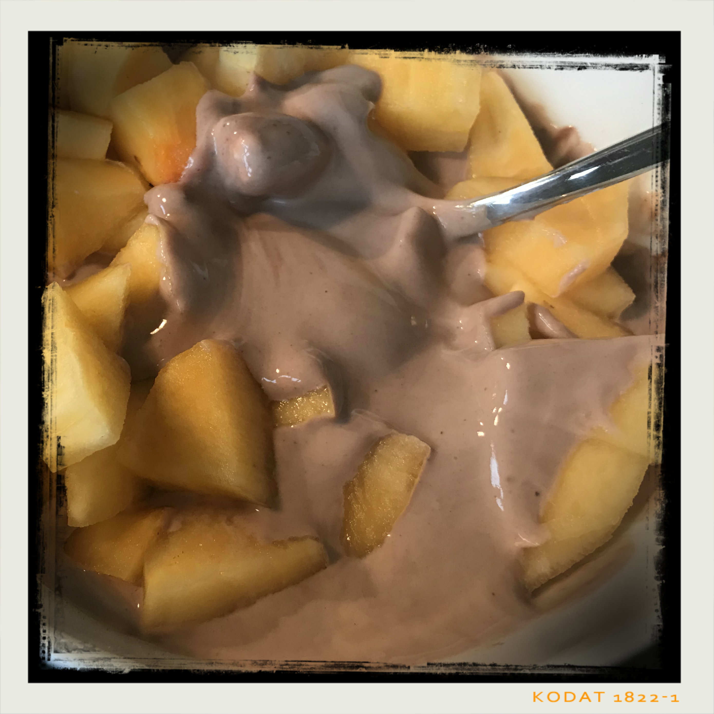 1 Kaki (in kleine Stücke geschnitten) darauf geben