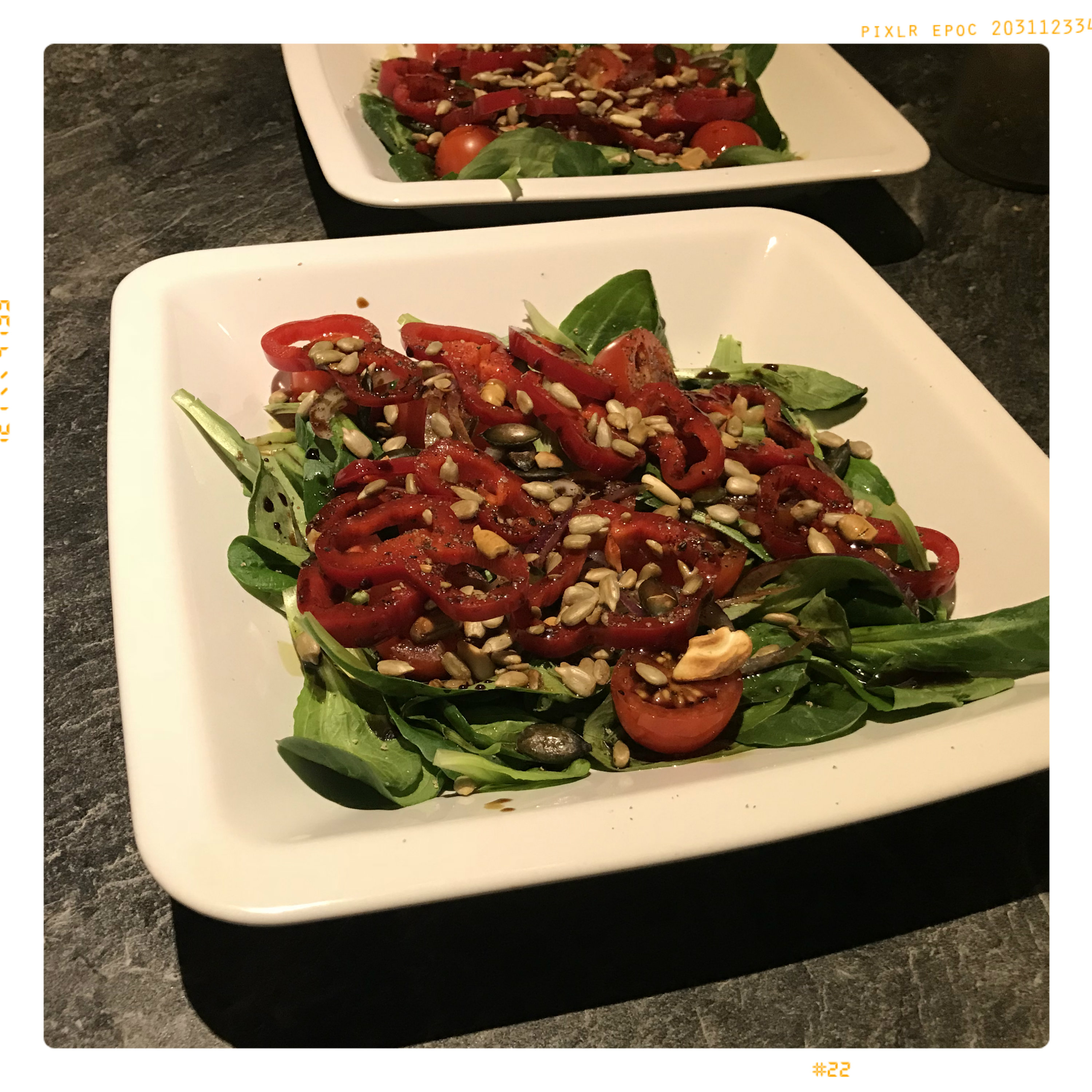 3 geh. EL Salatkerne (z. B. Alnatura) in einer Pfanne bei mittlerer Hitze leicht anrösten und abkühlen lassen