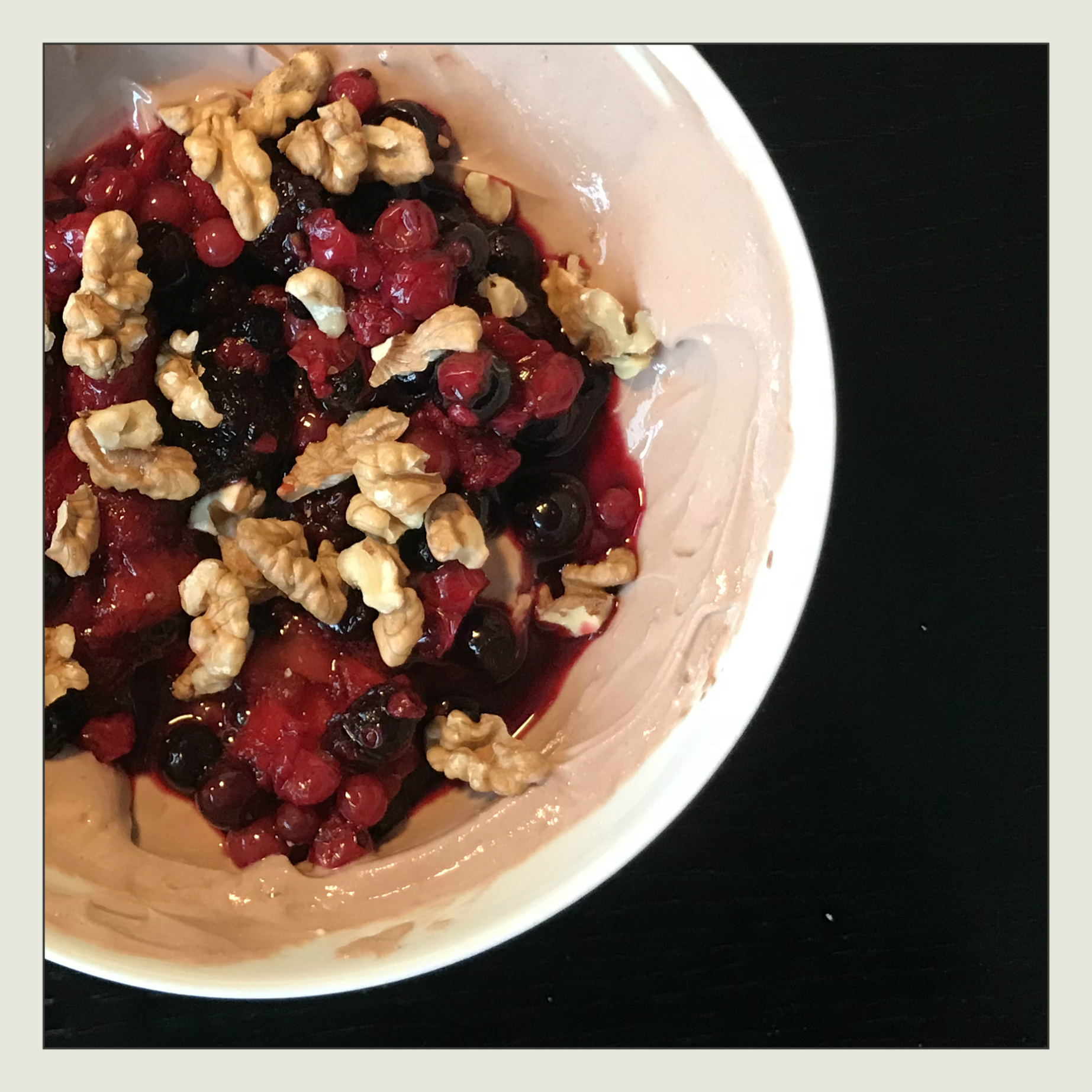 die Beerenmischung auf die Quarkcreme geben und