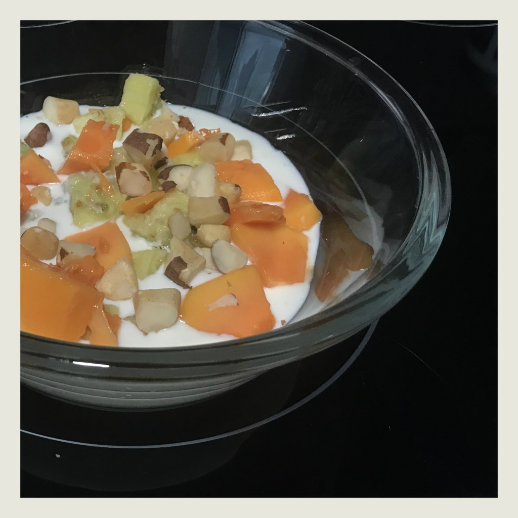 150 g Papaya (in kleine Stücke geschnitten) sowie