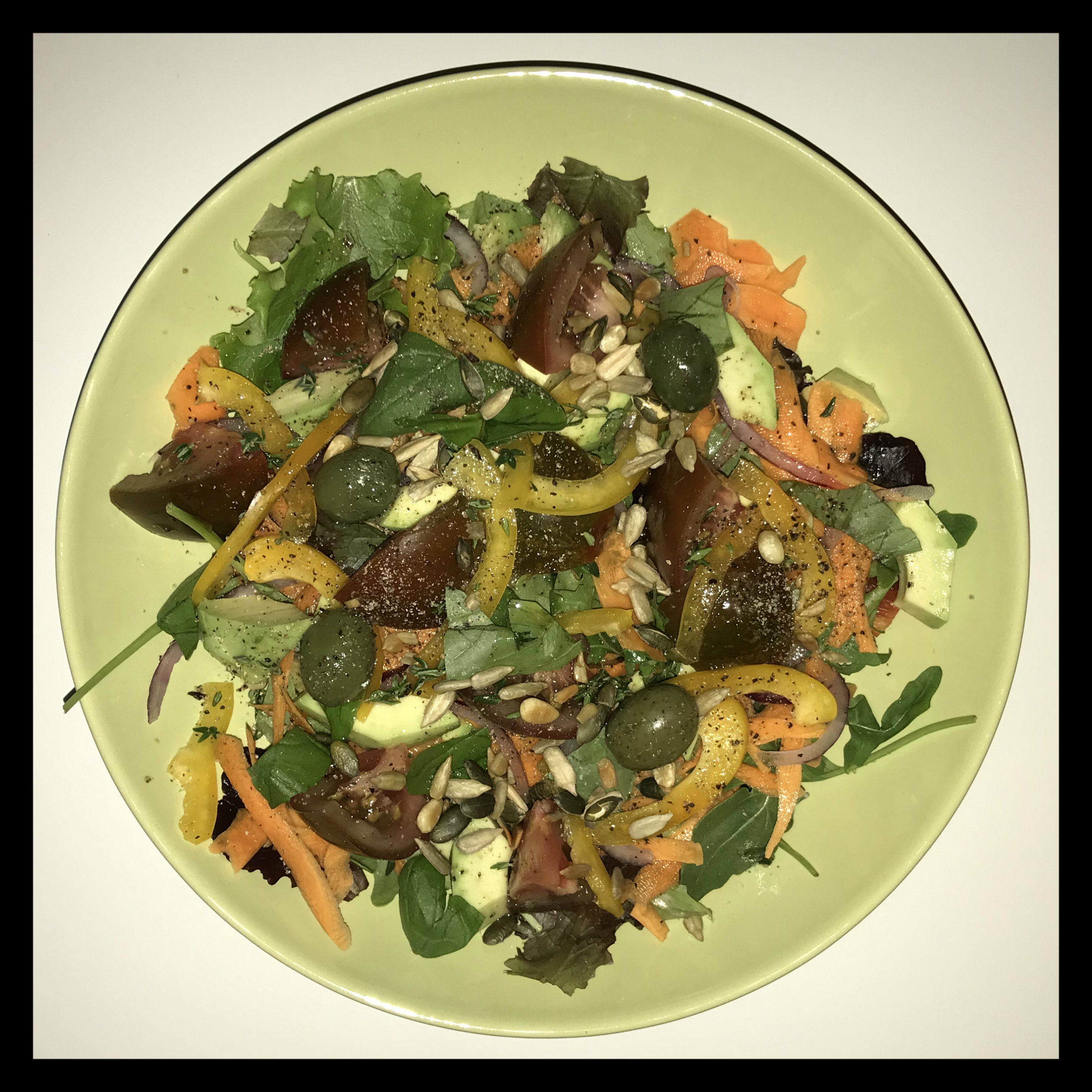 2 EL Sherryessig zu einem Salat mischen und mit den Salatkernen bestreuen