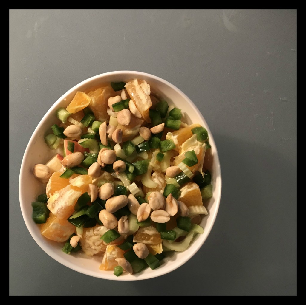 1 kl. Stange Staudensellerie (in Scheiben geschnitten) darauf verteilen, mit