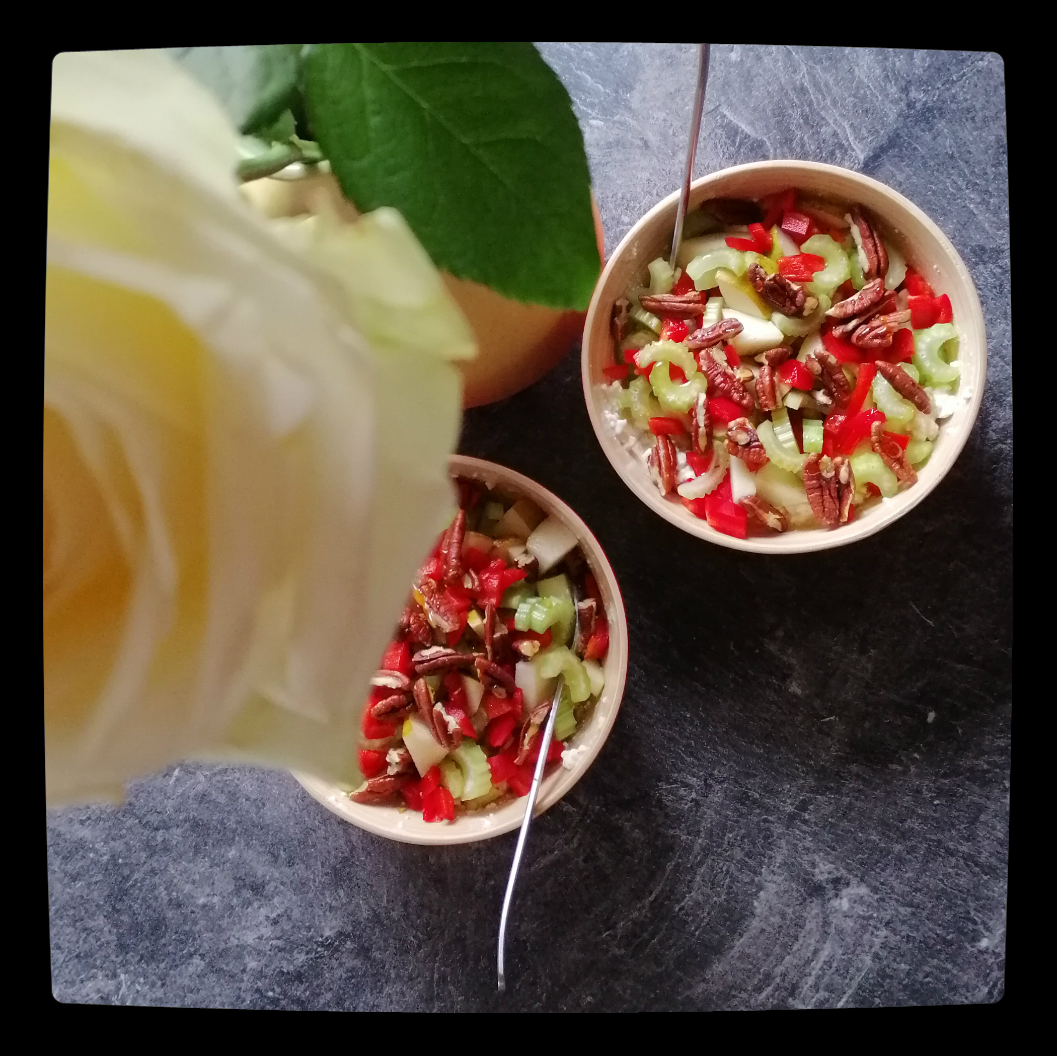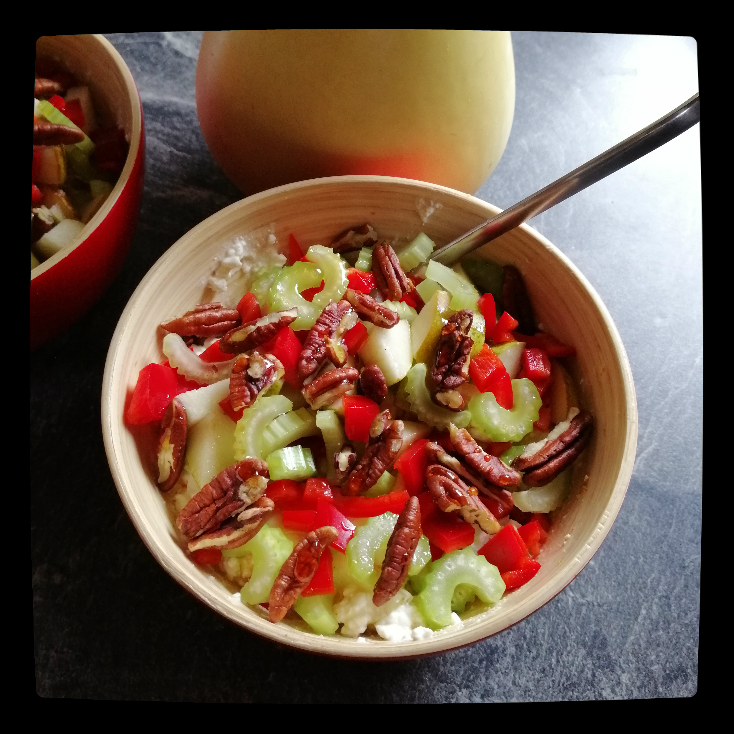 1 kl. Stange Staudensellerie (in Scheiben geschnitten) darauf verteilen, mit