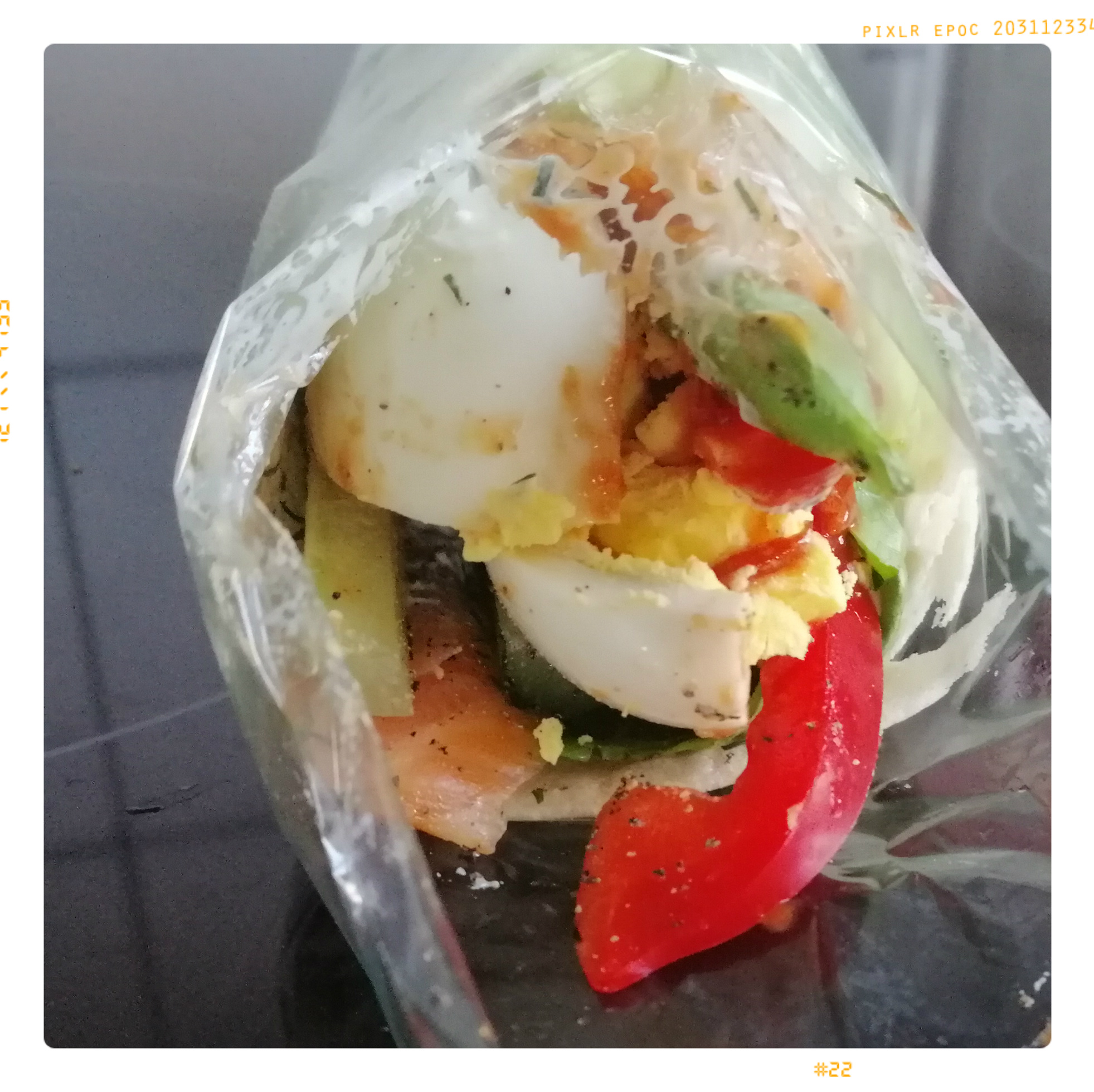 frisch gemahlenem schwarzen Pfeffer würzen, zu zwei Wrap fest zusammenrollen und in