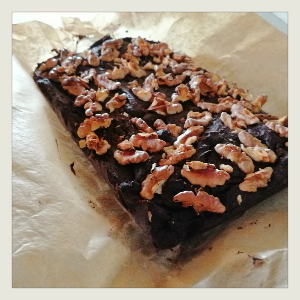 80 g Walnüsse (leicht zerkleinert) auf dem Teig verteilen und leicht in die Teigmasse drücken, dann auf der mittleren Einschubleiste auf dem Rost ca. 30 Min. backen, anschließend aus der Form nehmen und auf einem Gitterrost auskühlen lassen