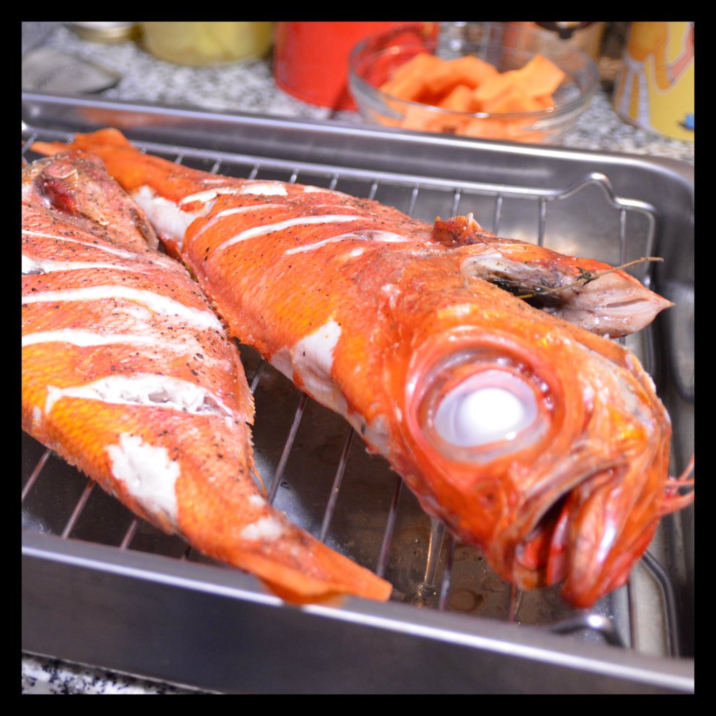 2 Alfonsinos (ca. 1,8 kg – küchenfertig) zuerst mit den aufgeschnittenen Seiten von