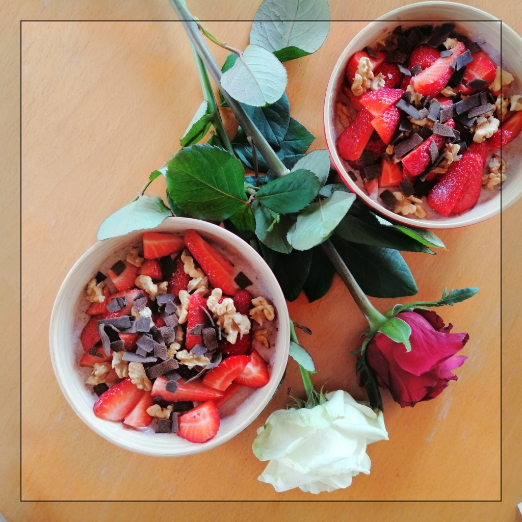 400 g Erdbeeren (geviertelt) drüber geben und mit