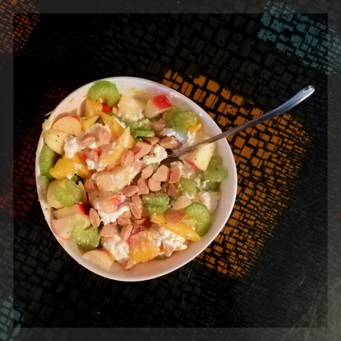 1 kl. Stange Staudensellerie in dünne Scheiben schneiden, alles mit der abgeriebenen Schale und dem Saft von