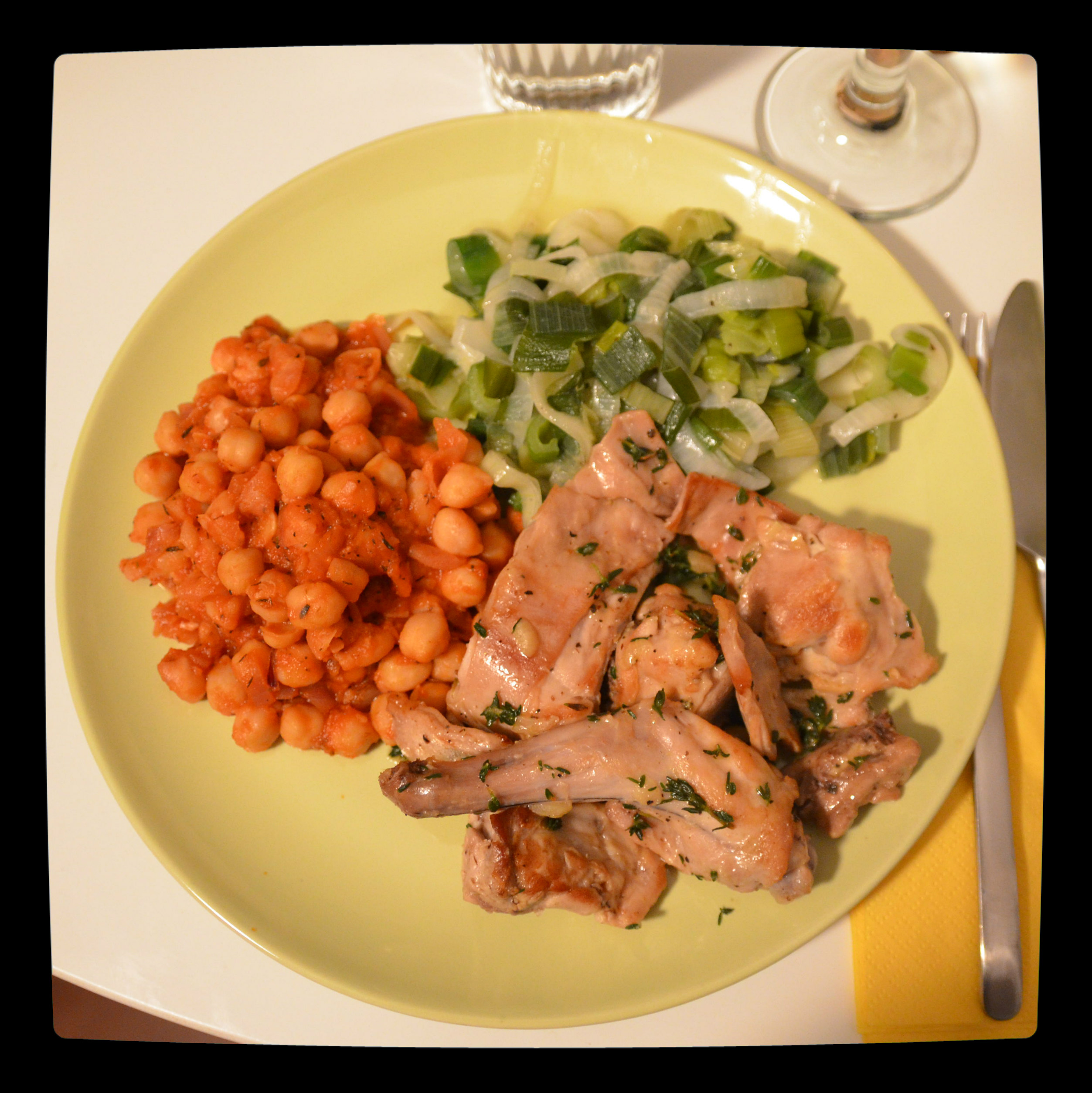 Gemüse, Kichererbsen und Kaninchenteile mit