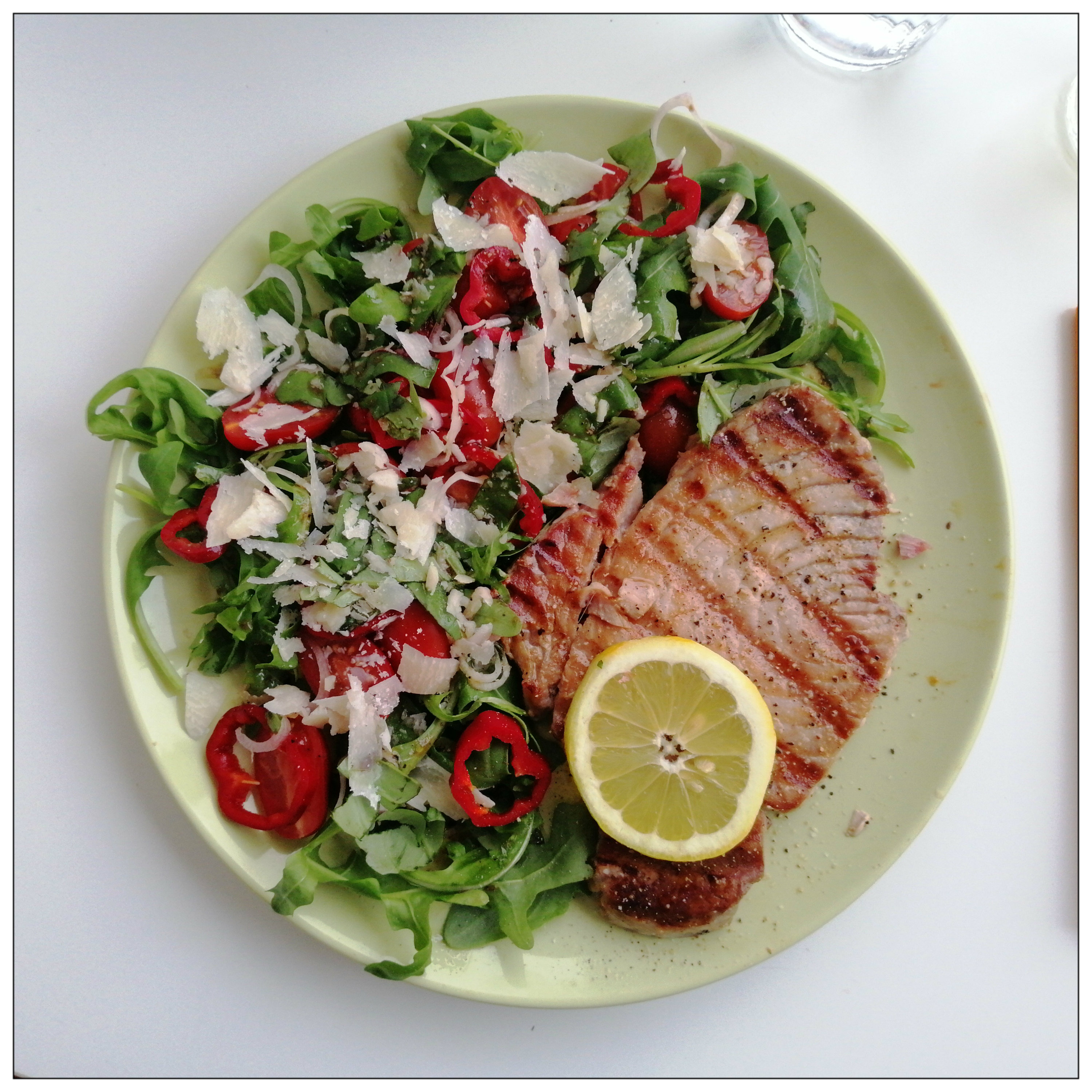 1 Tunfischsteak (ca. 200 g – knapp 2 cm dick) mit