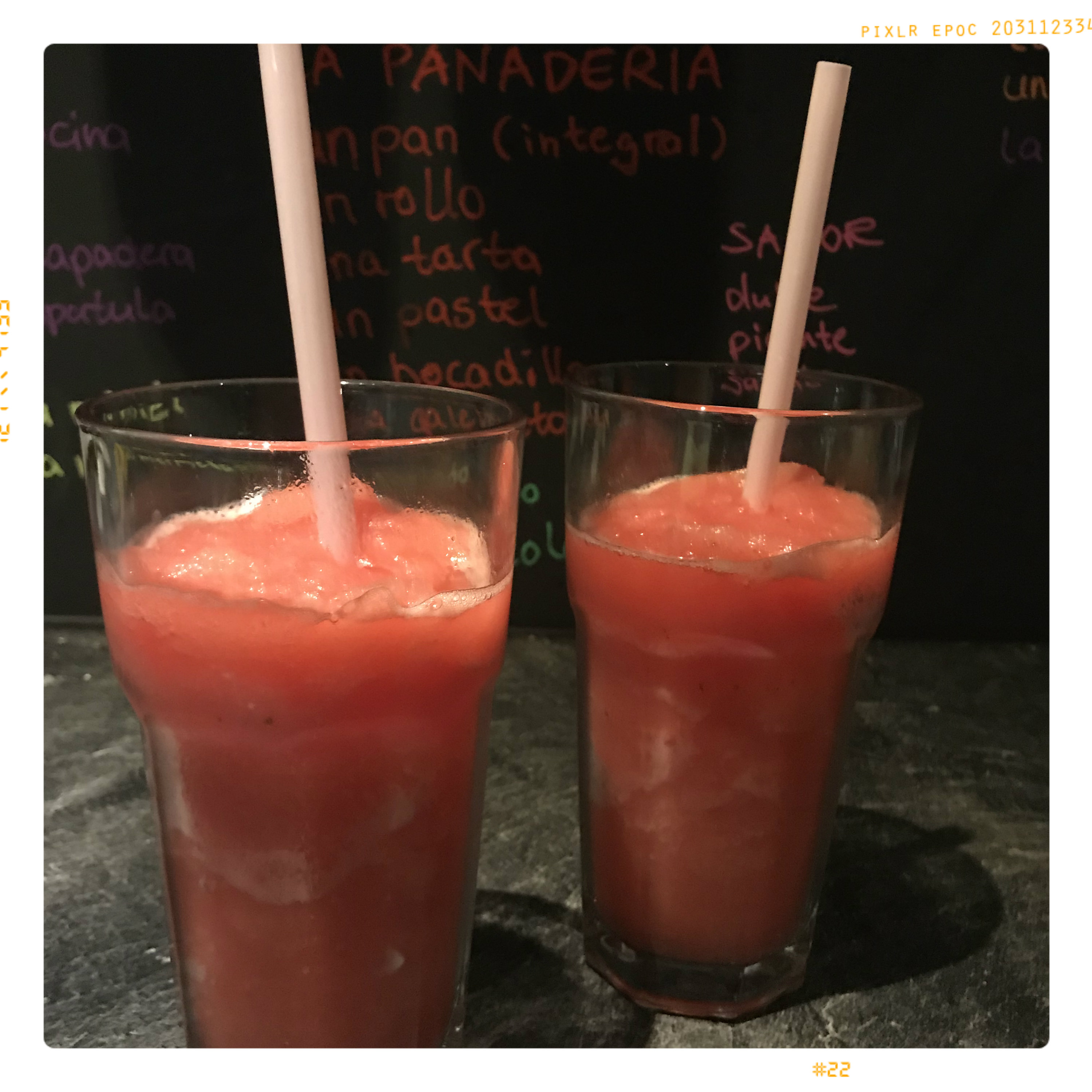 20 Eiswürfel in den Standmixer geben und alles so lange mixen, bis das Eis ausreichend zerkleinert ist, in zwei große Gläser (ca. 400 ml) geben und mit Trinkhalmen servieren