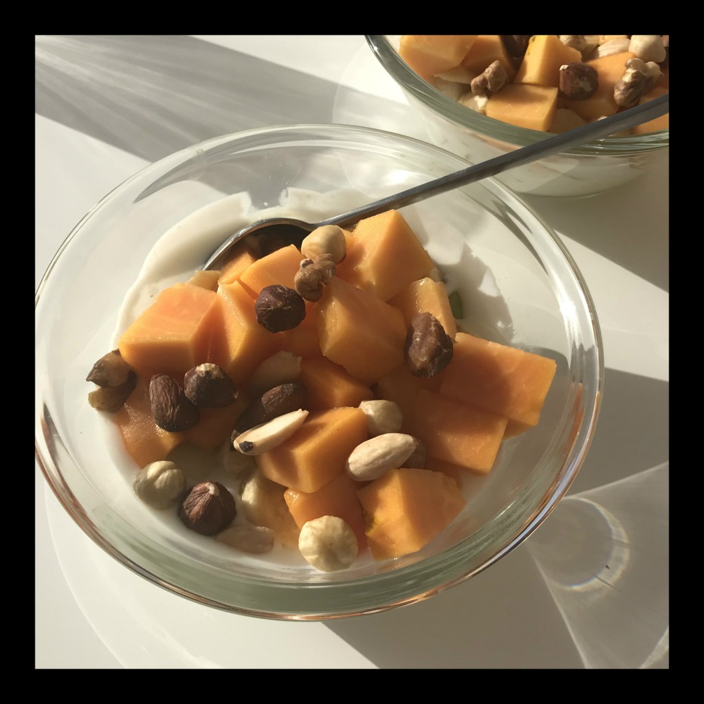 ca. 180 g Papaya (in kleine Stücke geschnitten) bedecken und