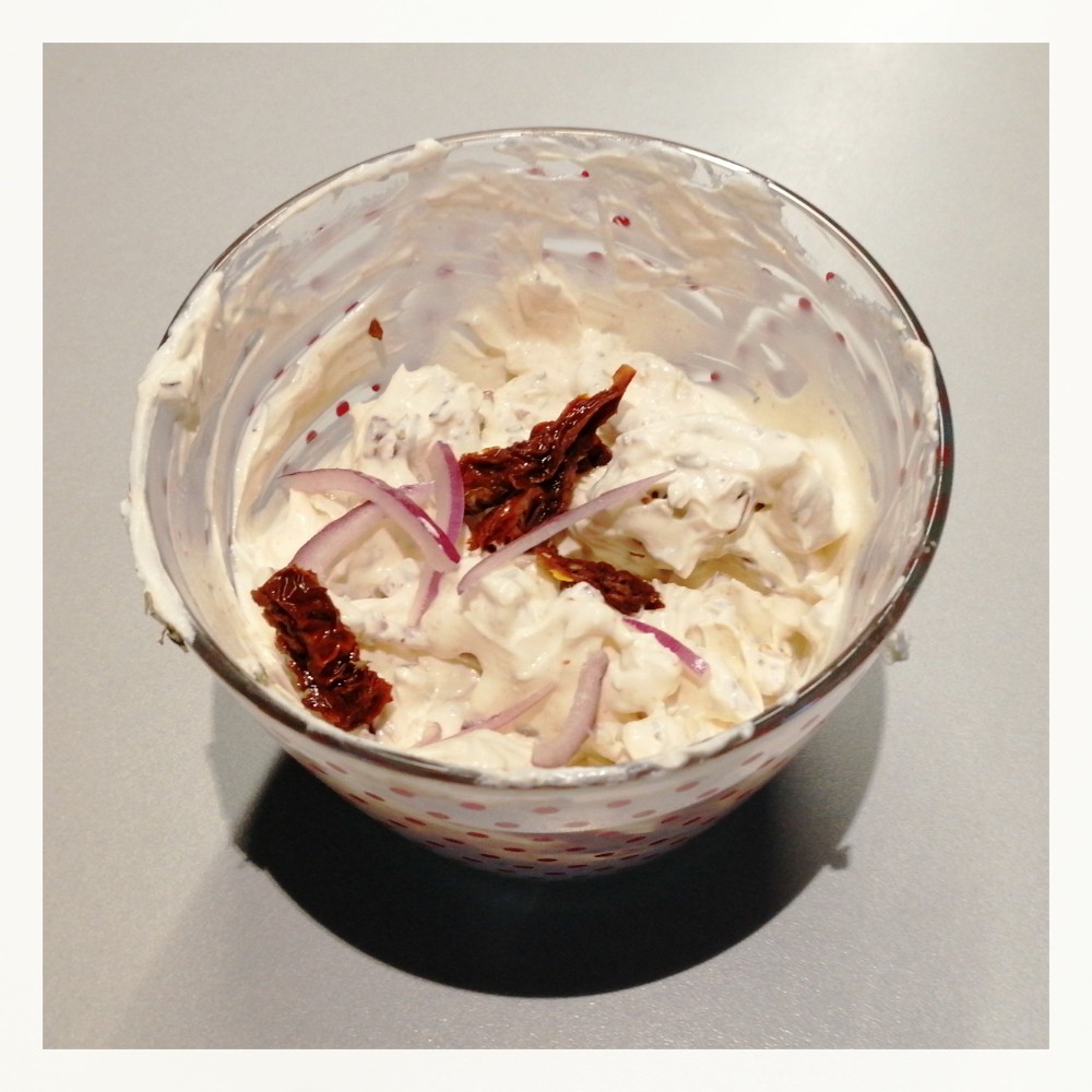 ein Brotaufstrich, z. B. auf Eiweißbrötchen, griechische Art (Rezept siehe 29. Januar 2019), reicht für etwa 6 Brötchen