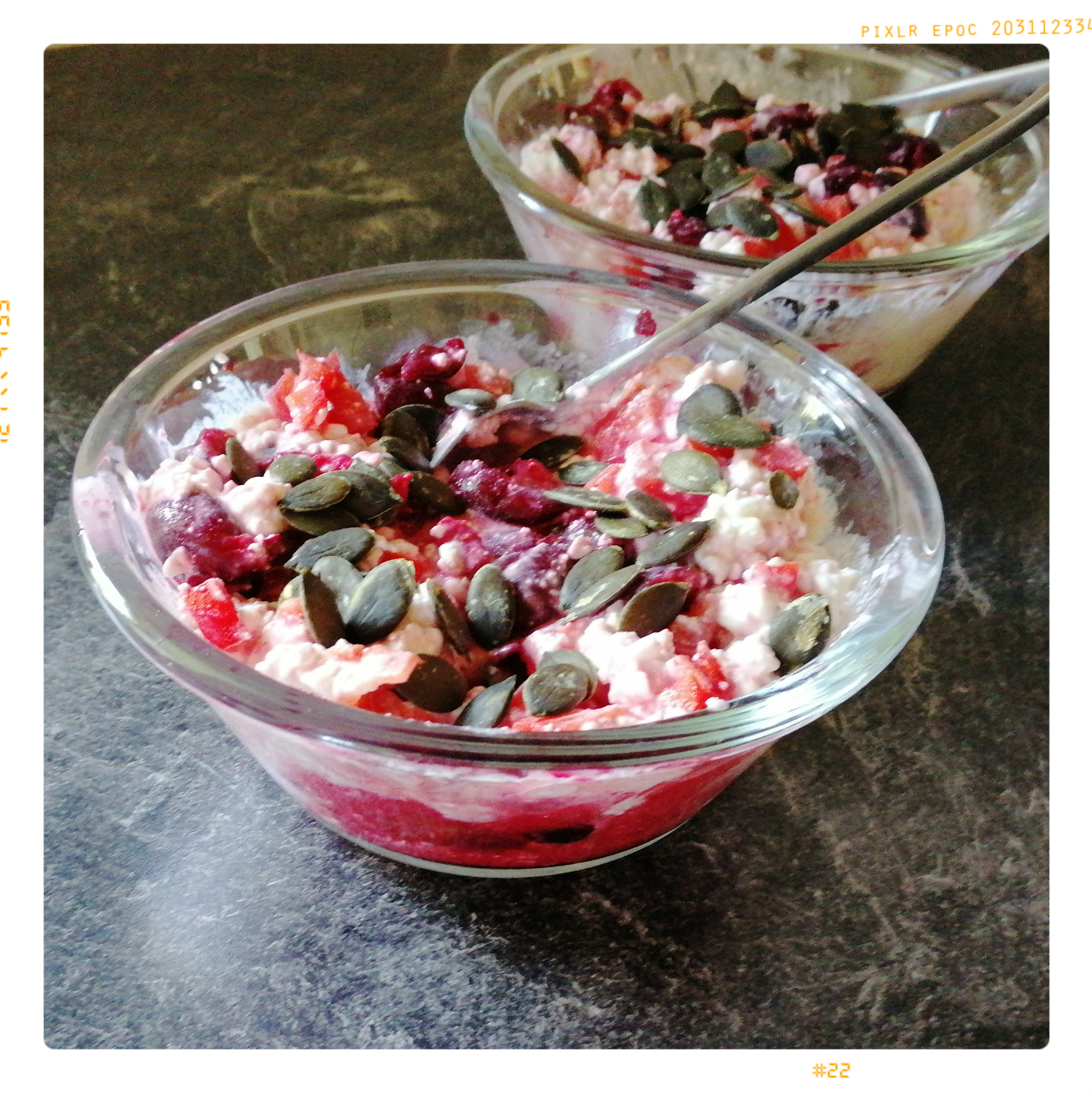 1/4 rote Paprika (in feine kurze Streifen geschnitten) mit