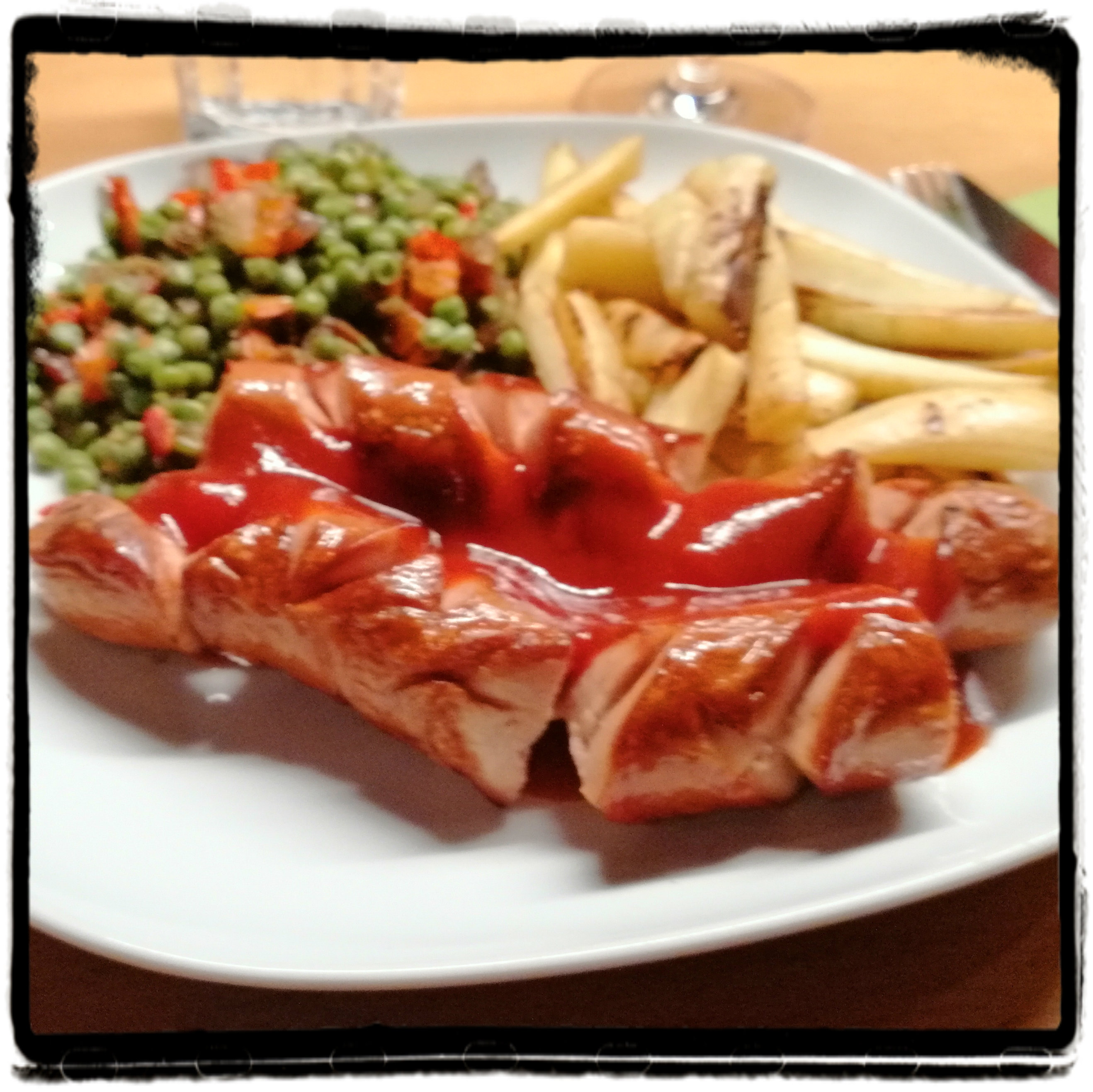 wenn wir nicht viel Zeit haben, dann kann es auch mal wieder die original Volkswagen-Currywurst und der zugehörige Volkswagen-Gewürzketchup geben, diese sind beim VW-Händler – üblicherweise unter Vorbestellung – zu beziehen oder online bei https://www.gesundekost.org/shop/VW-Currywurst/ zu bestellen, in manchen Supermärkten sind sie auch schon zu finden