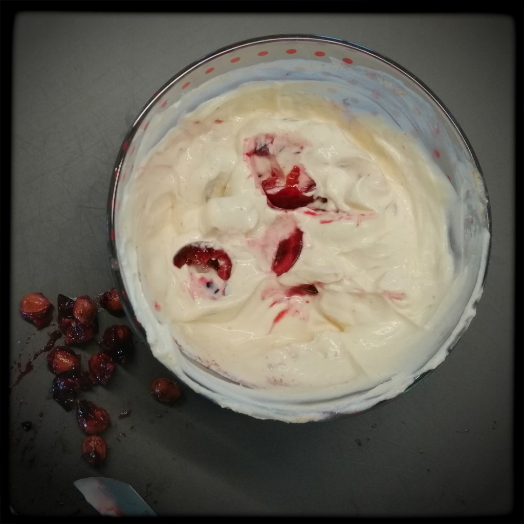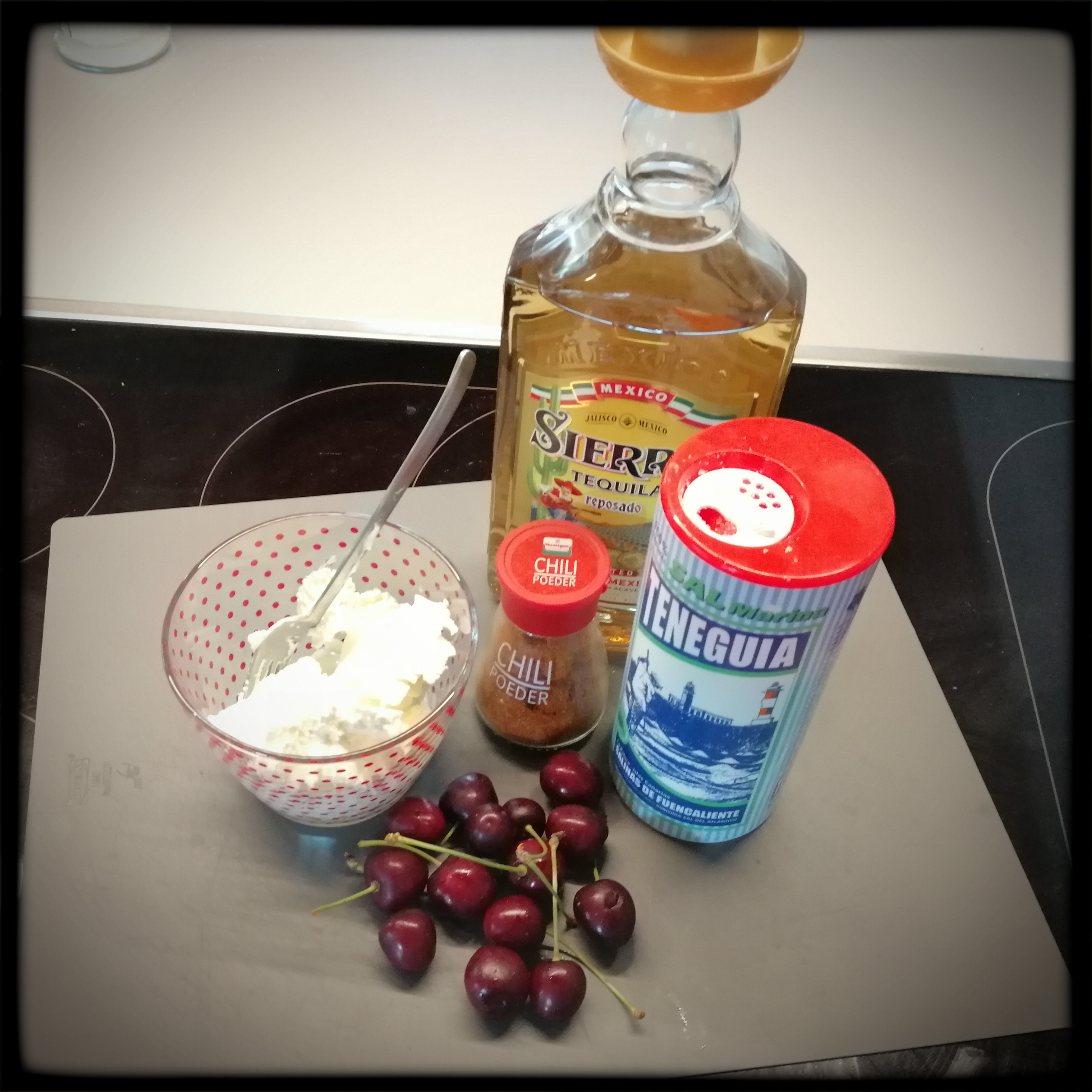 1/3 TL Chilipulver verrühren, Kirschen unterrühren und mit