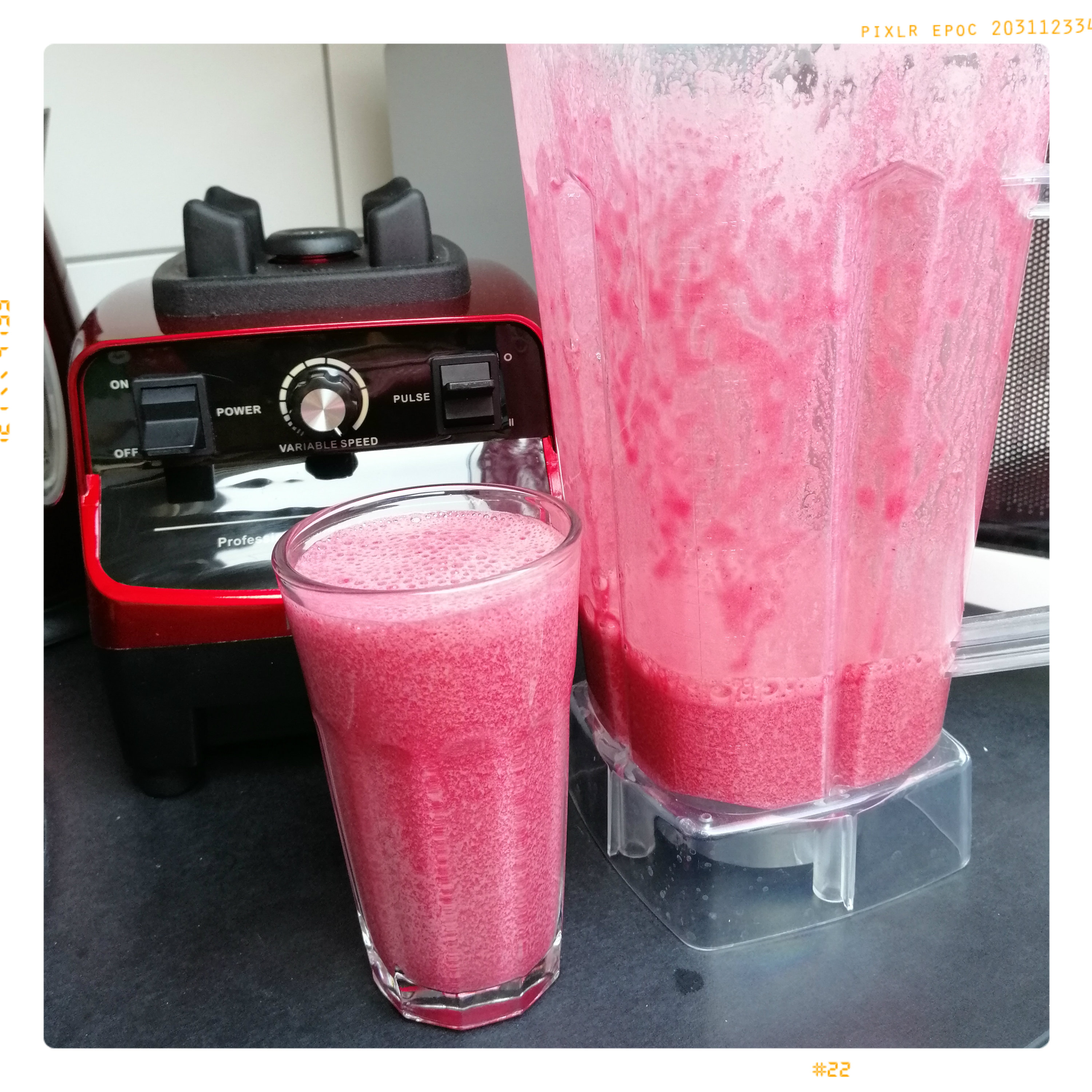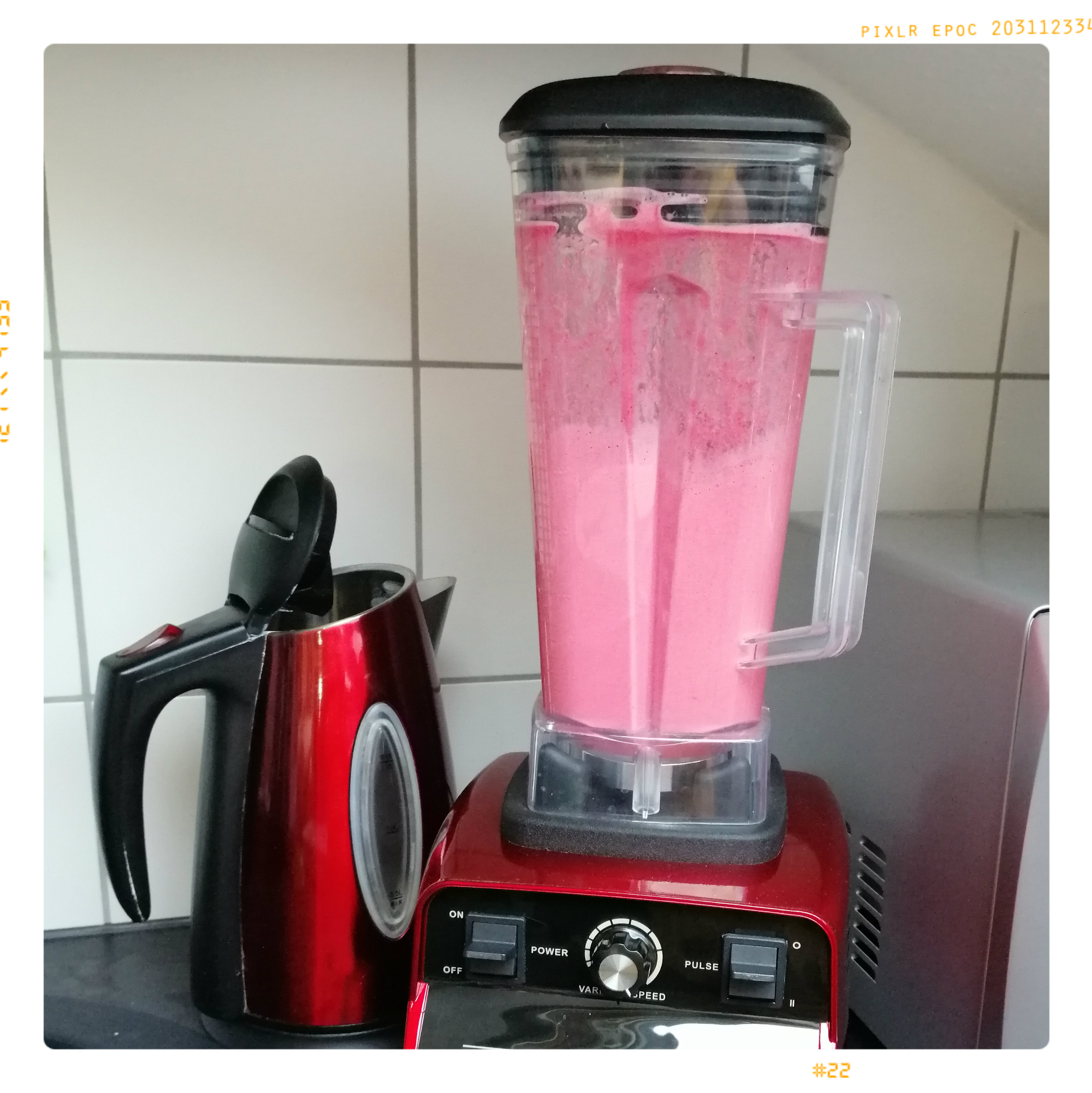 4 Eiswürfeln im Standmixer zu einem Smoothie verarbeiten