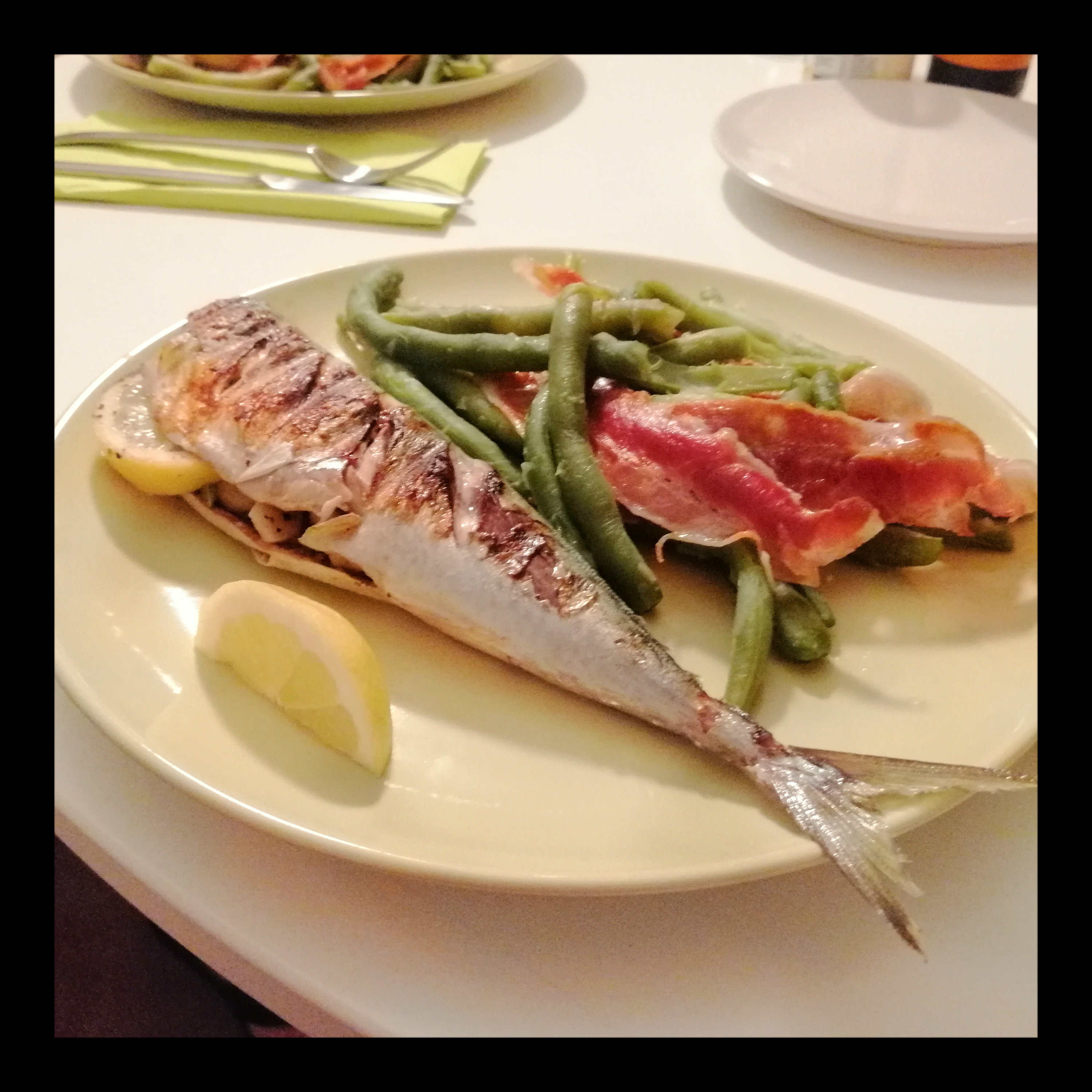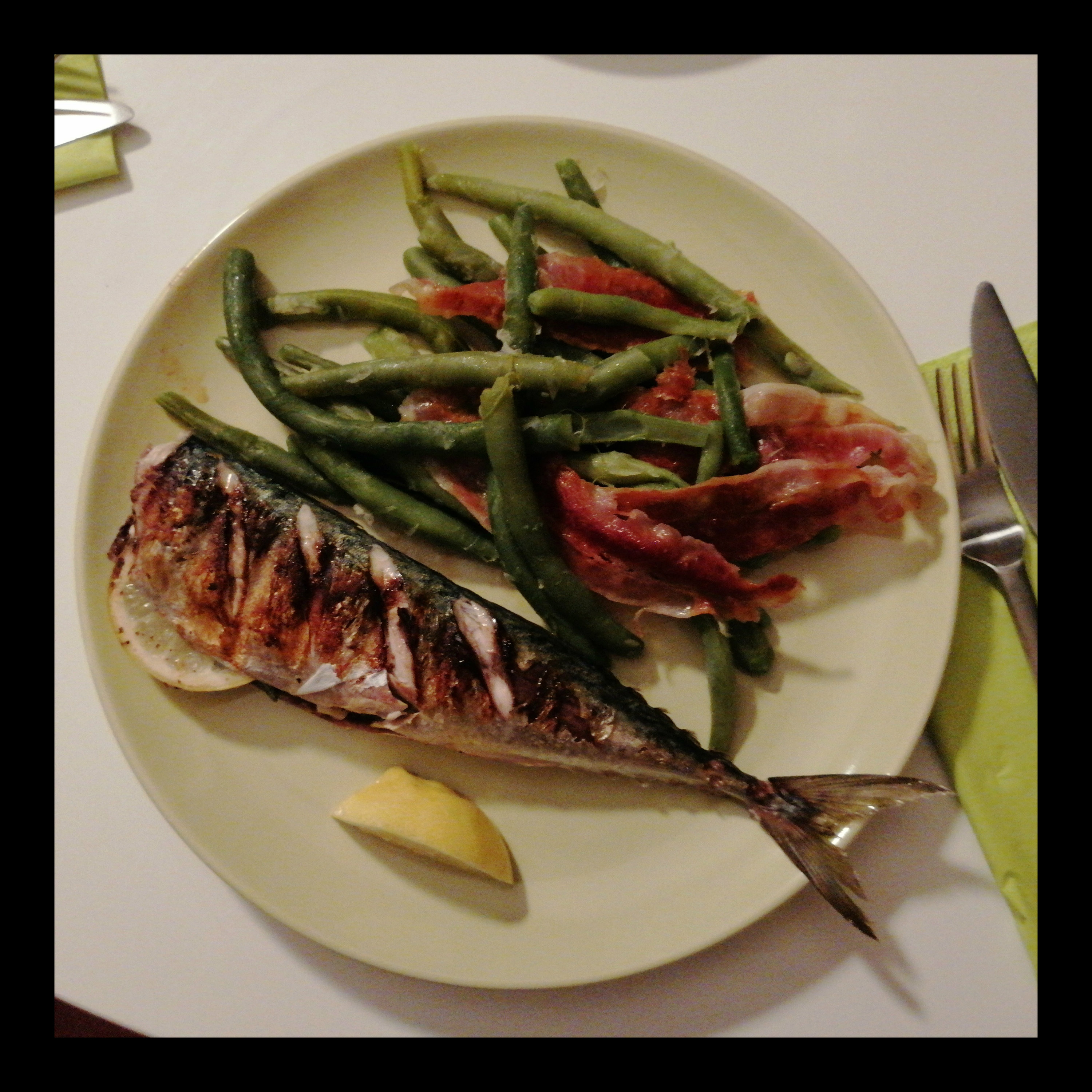 2 Makrelen (je ca. 330 g) ohne Kopf leicht schräg einritzen und innen und außen mit