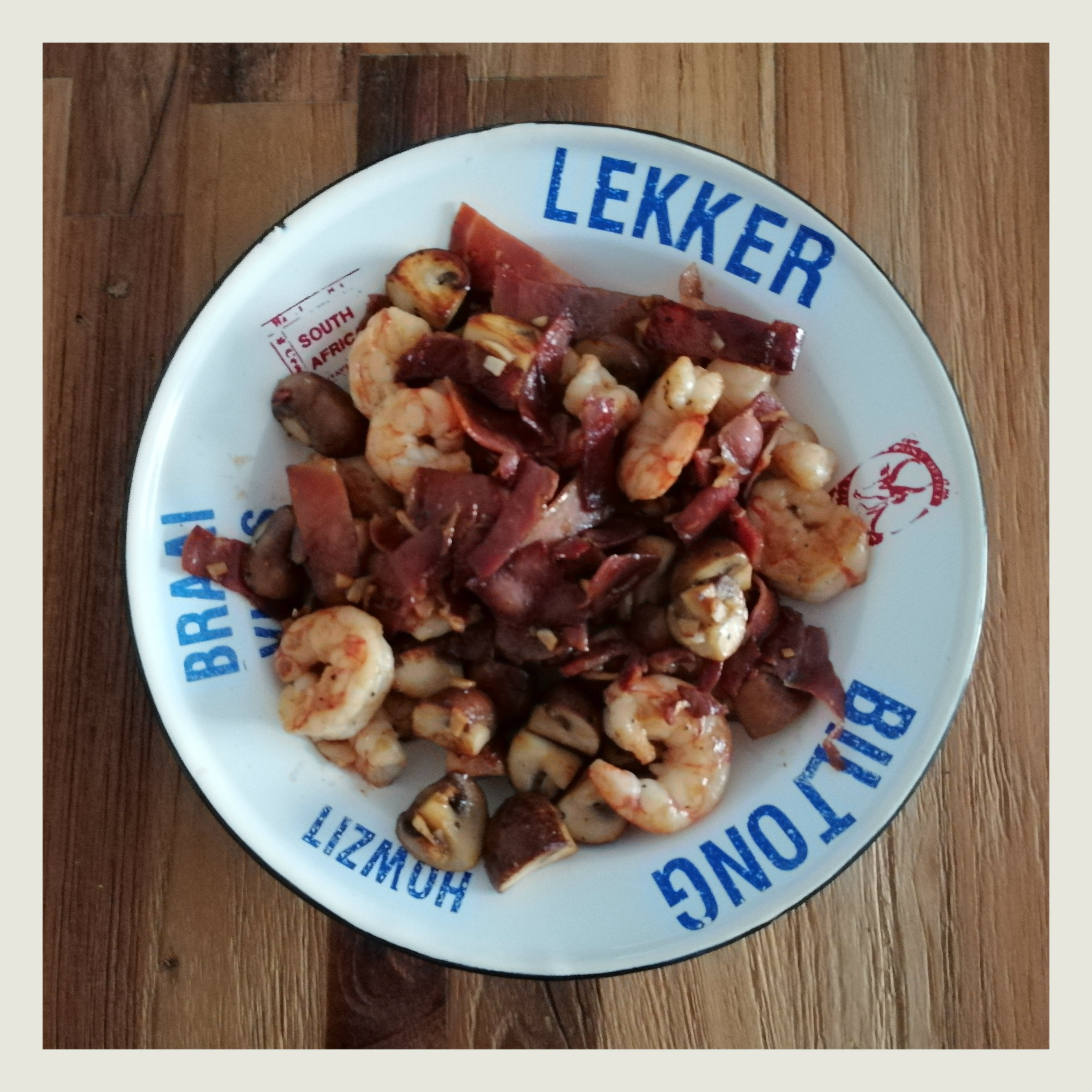 1 EL Butter mittelstark erhitzen und die Champignons darin unter Wenden ca. 3 Min. anbraten, dann Schinken, Knoblauch und Langostinos hinzufügen und weiter ca. 3 Min. unter häufigem Wenden braten, mit