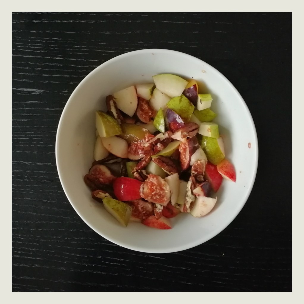 1 kl. Feige in kleine Stücke schneiden, mit dem Saft von