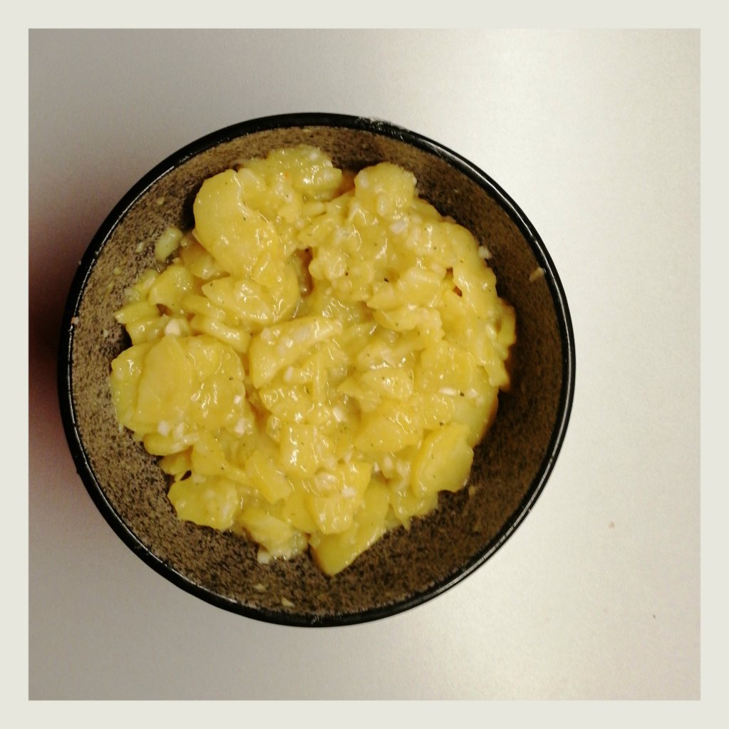 der Kartoffelsalat passt z. B. zu Hacksteak mit Champignons (Rezept siehe 18. Oktober 2016)