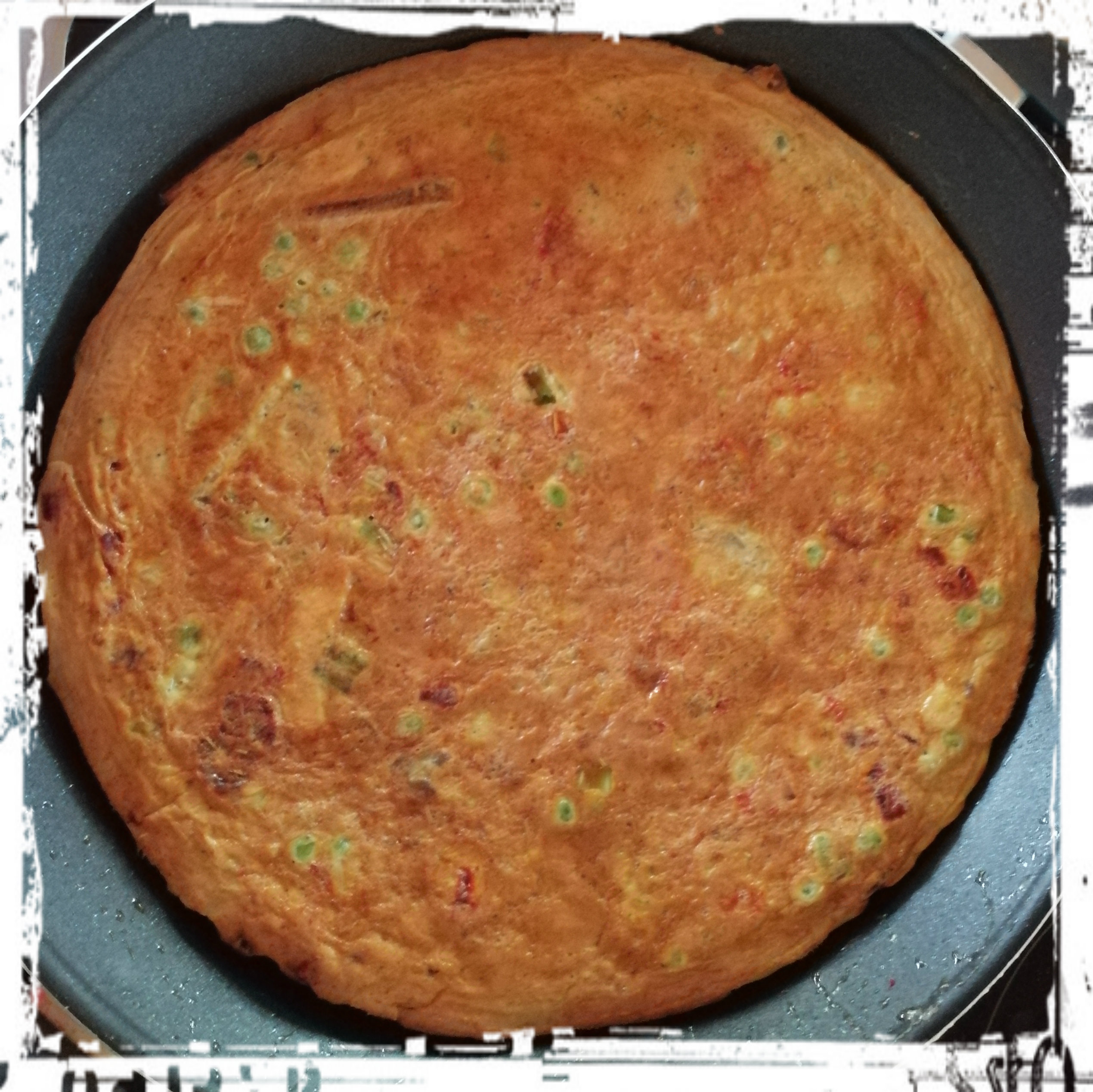 1 EL Kokosöl geben, die Pfanne sofort mit dem Deckel schließen und nach 2 – 3 Minuten auf mittelschwache Hitze herunterschalten, etwa 12 Minuten garen, bis die Oberfläche der Tortilla gestockt ist, die Tortilla über den Deckel wenden und die andere Seite etwa 3 Minuten bei mittelstarker Hitze braten, bis sie leicht gebräunt ist