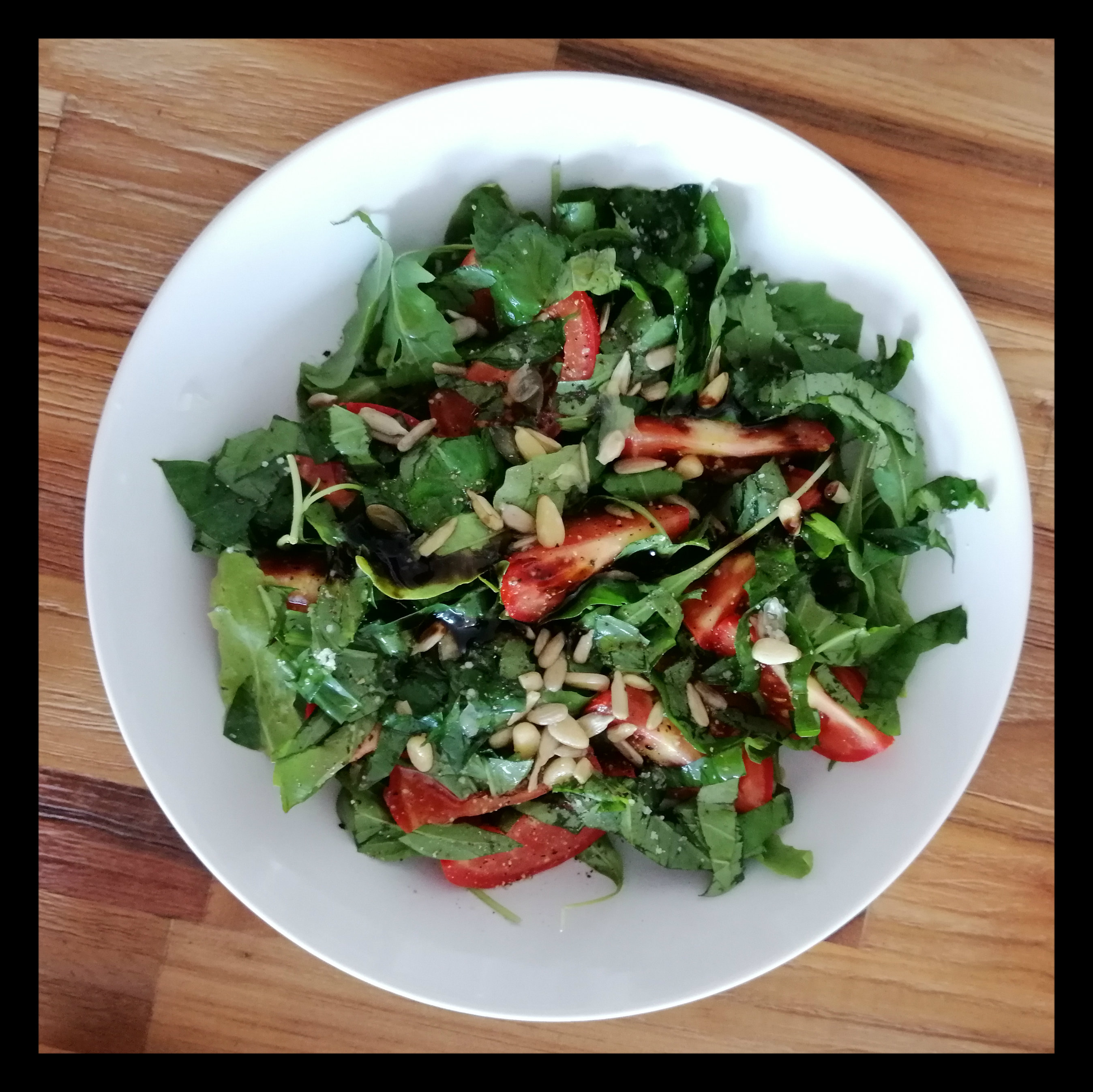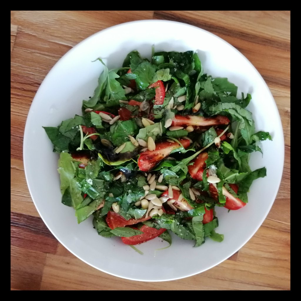 der Salat passt z. B. gut zu den Gambas mit Austernpilzen (Rezept siehe 22. Dezember 2019)