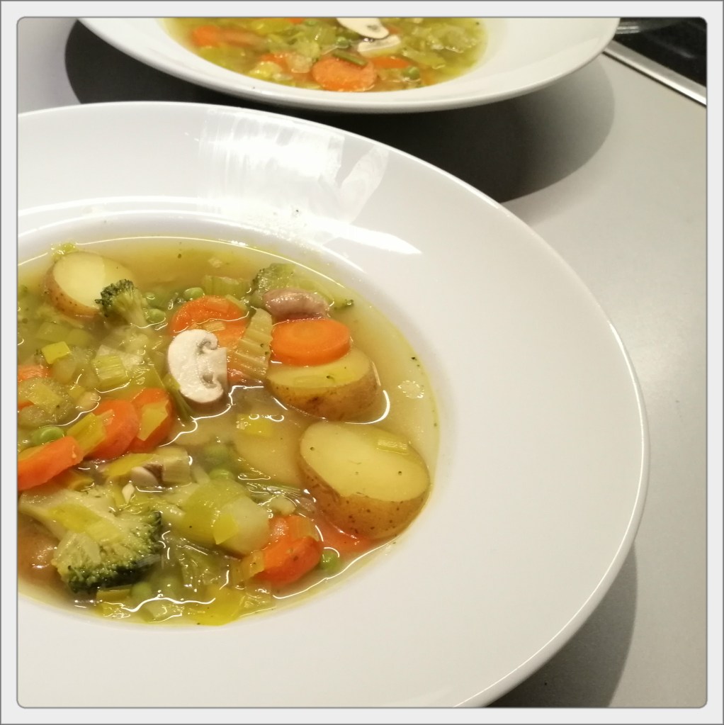 gerade gut, wenn man vielleicht etwas angeschlagen ist, die Suppe reicht für zwei zum Sattessen (2 Teller für jeden), lässt sich aber auch gut zum Teil für später einfrieren