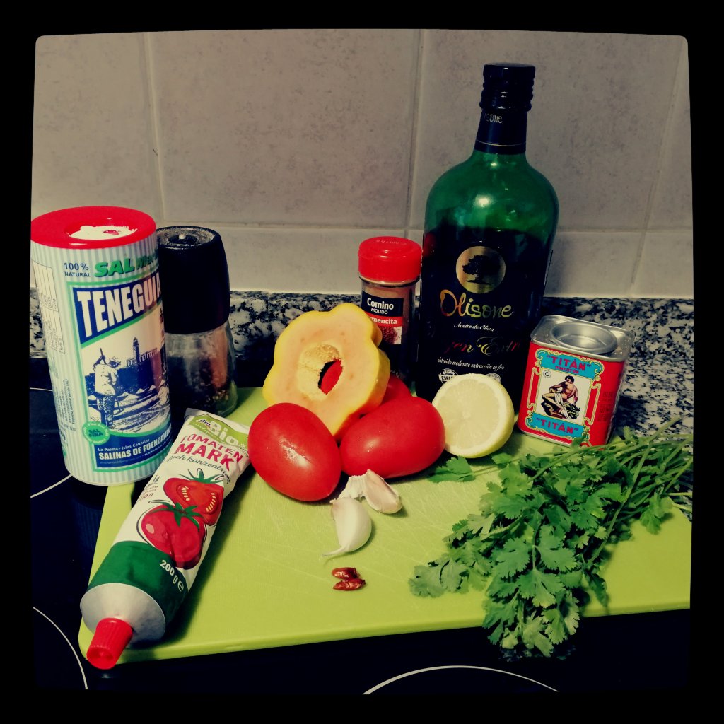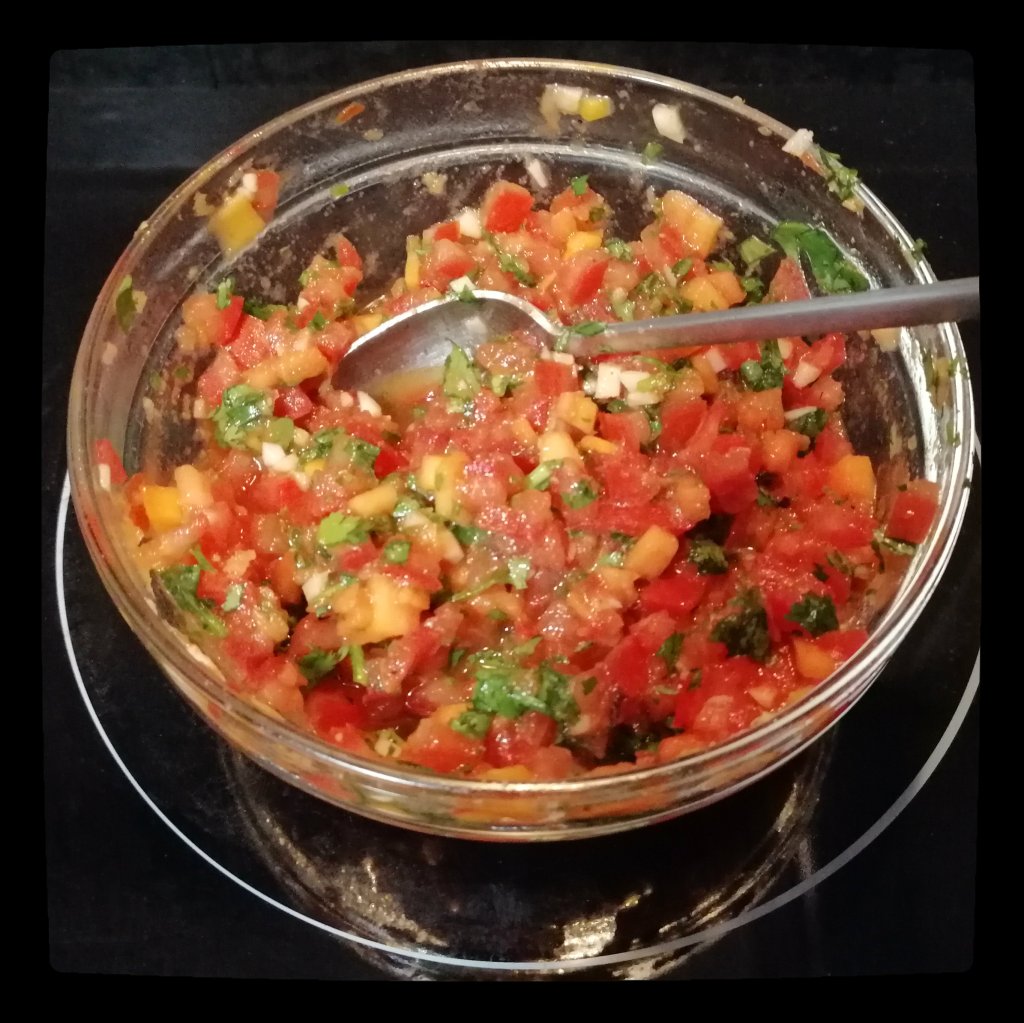 Tomaten und Papaya mit der Würz-Mischung verrühren und etwa 1 Stunde ziehen lassen, derweil