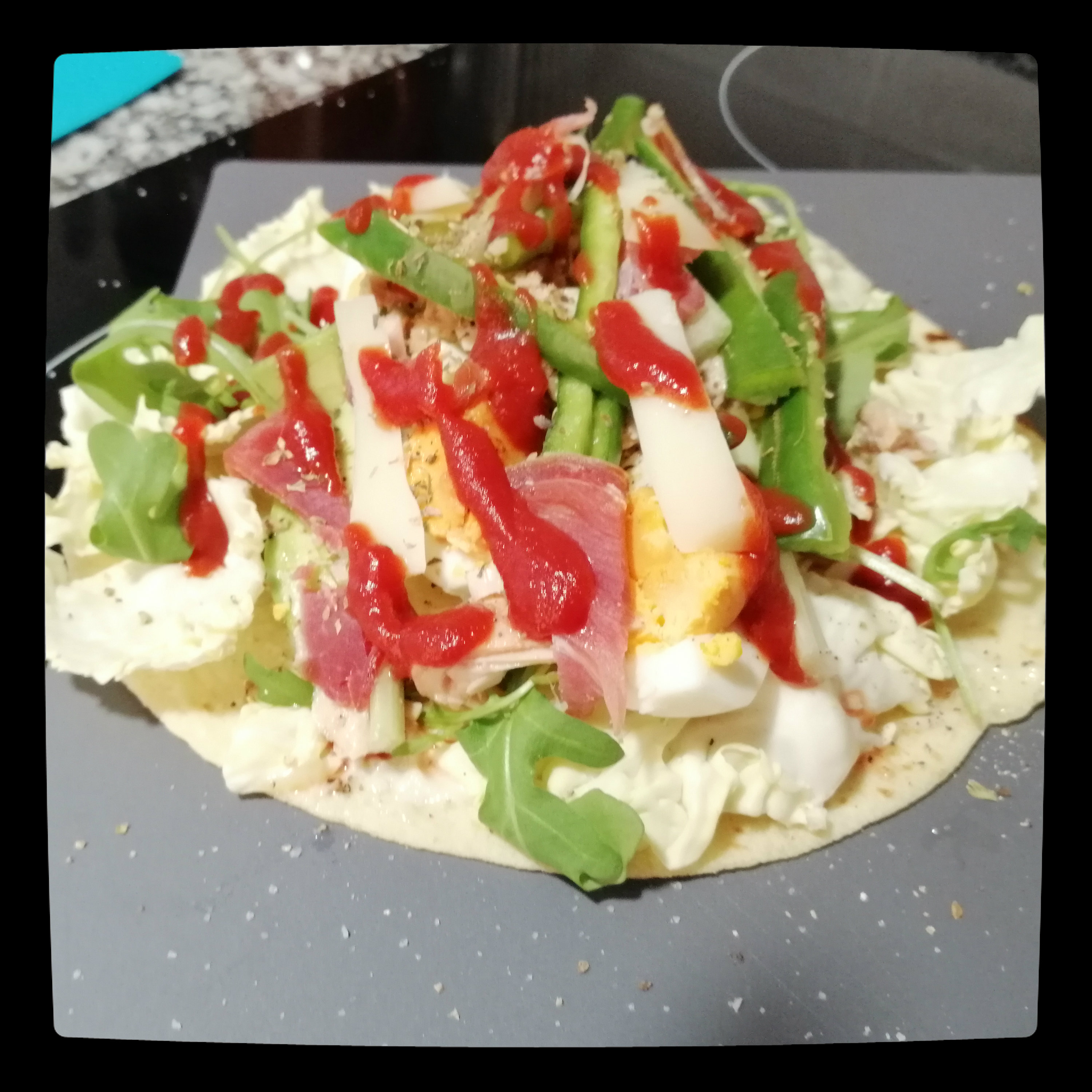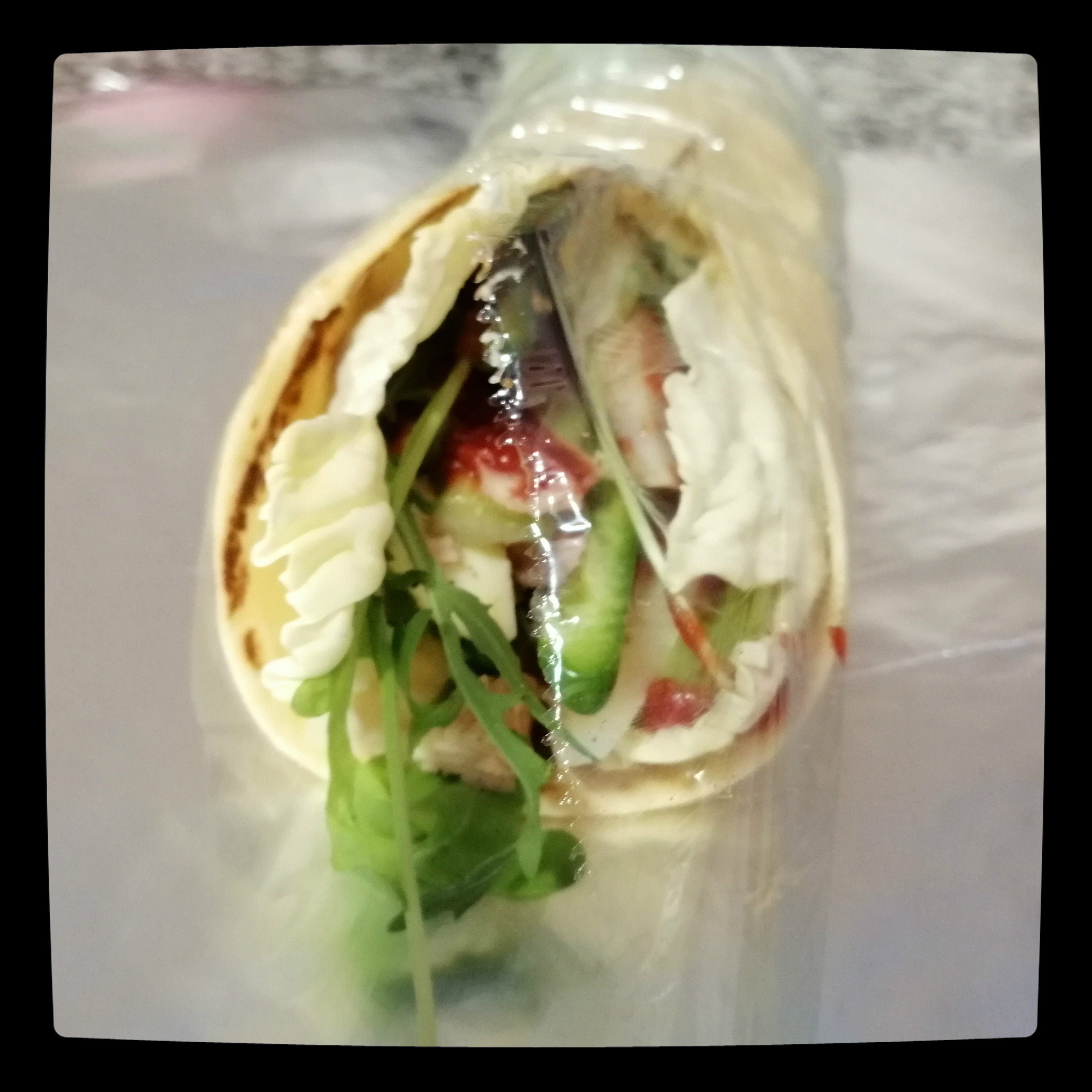 frisch gemahlenem schwarzen Pfeffer würzen, zu einem Wrap fest zusammenrollen und in