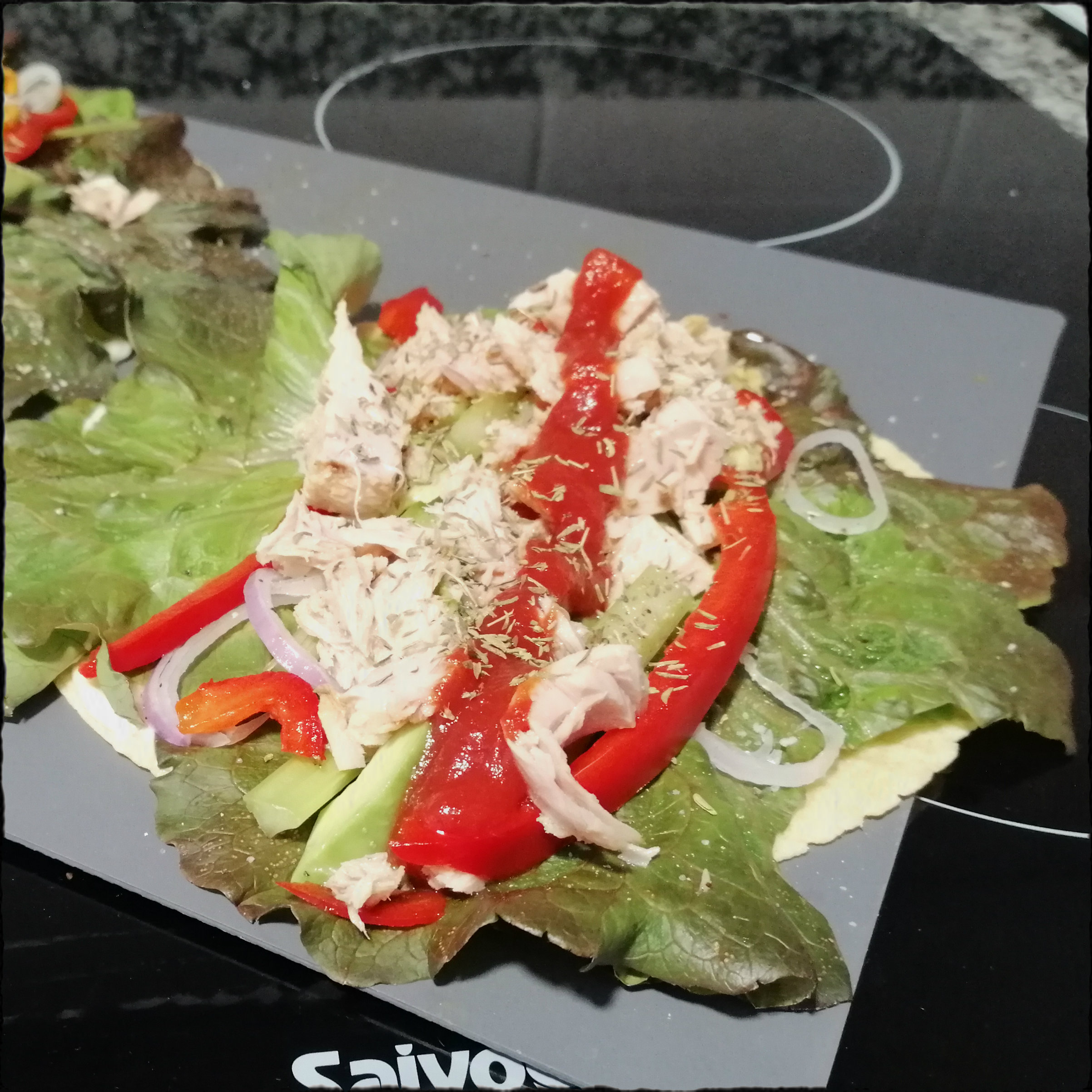 55 g Bonito (in Olivenöl, ersatzweise Tunfisch – abgetropft) belegen, mit