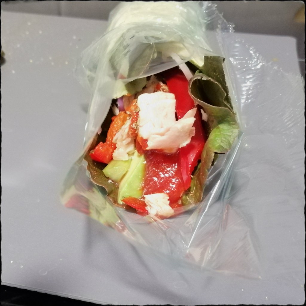 frisch gemahlenem schwarzen Pfeffer würzen, zu einem Wrap fest zusammenrollen und in