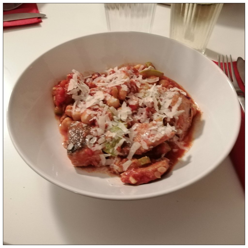 100 ml trockenen Weißwein unter die Gemüsemischung rühren und kurz köcheln lassen, dann die Fisch-Stücke und