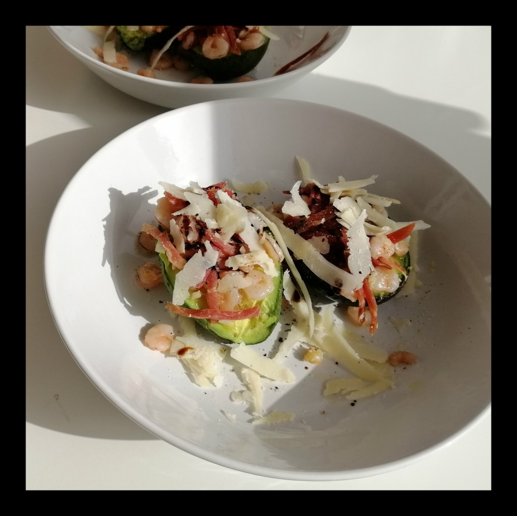alles auf den Avocado-Hälften verteilen, dann noch mit etwas