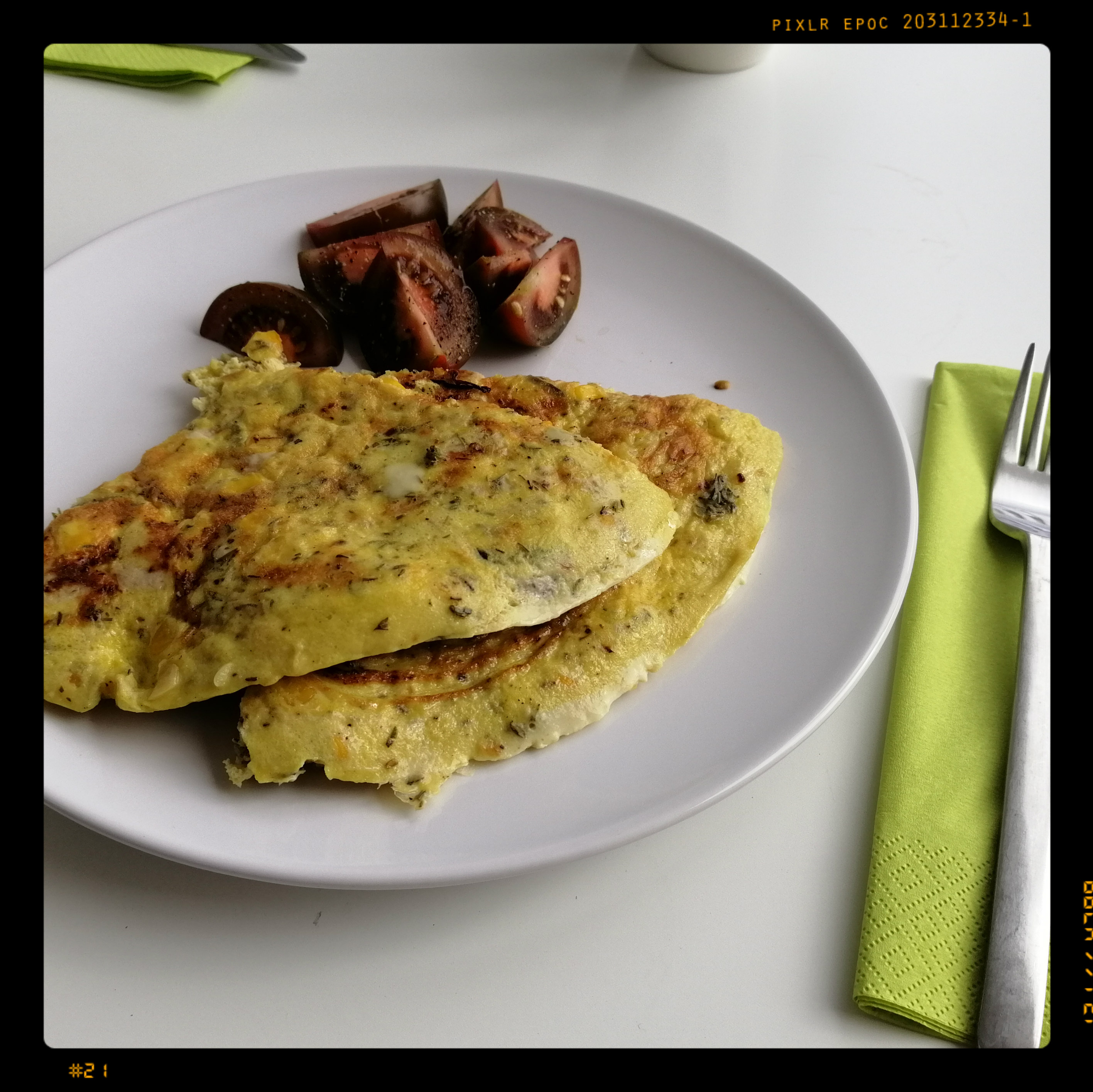 1 EL Brat-Olivenöl in der Pfanne mittelstark erhitzen, die Ei-Mischung hineingießen und die Pfanne sofort mit dem Deckel schließen, nach ca. 2 Min. die Hitze auf mittelschwach reduzieren, weitere ca. 5 Min. garen, bis die Oberfläche gestockt ist, dann die Tortilla über den Deckel wenden und noch ca. 2 Min. bei mittlerer Hitze fertig braten