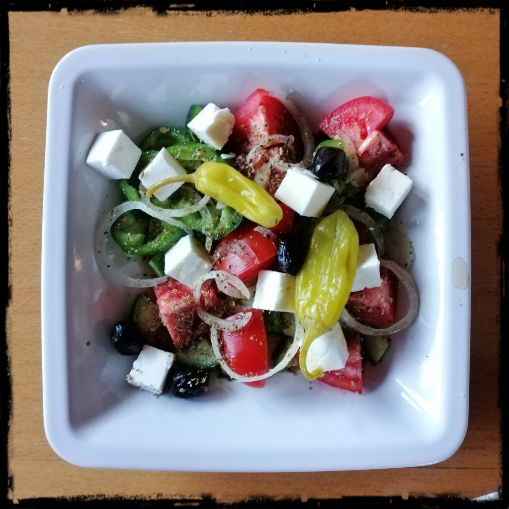 50 g Feta (aus Schaf- und ggf. Ziegenmilch) grob würfeln und zusammen mit