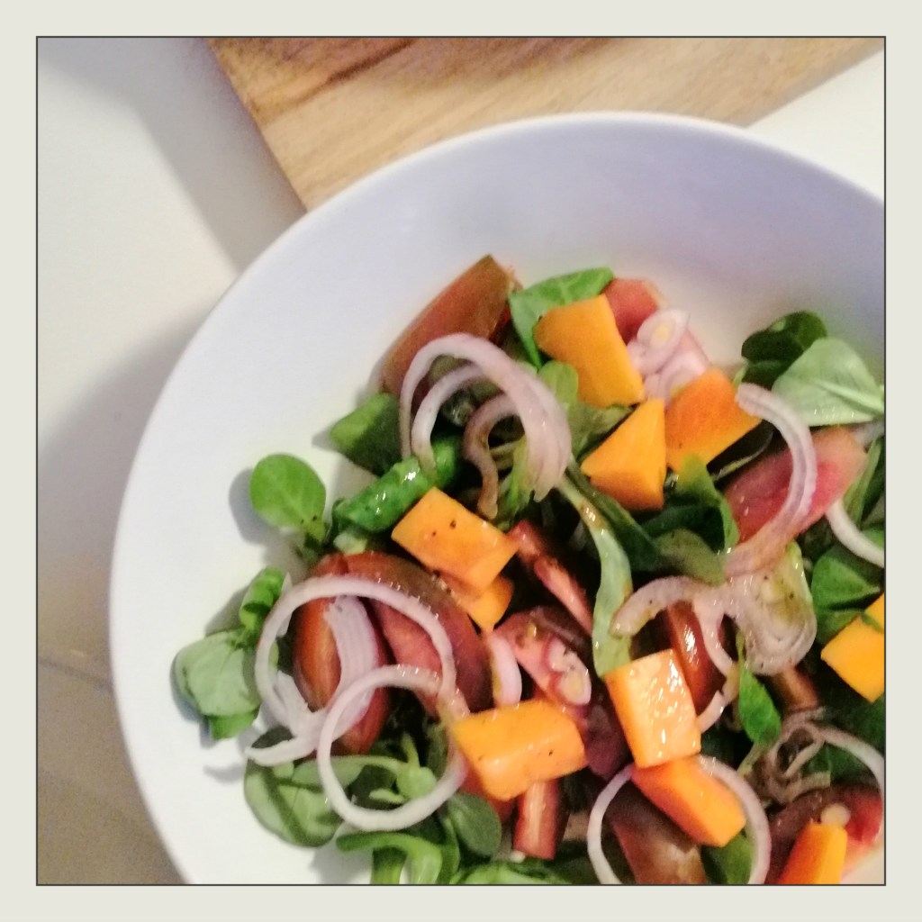 der Salat passt gut als Beilage z. B. zur Pizza mit Calamar, Datteltomaten und Parmesan (Rezept vom 26. März 2018)
