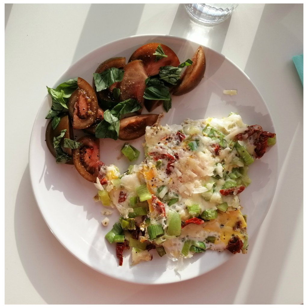 die Eier in zwei Portionen aufteilen und z. B. mit gewürzten Kumato-Tomaten und Basilikum auf vorgewärmten Tellern servieren