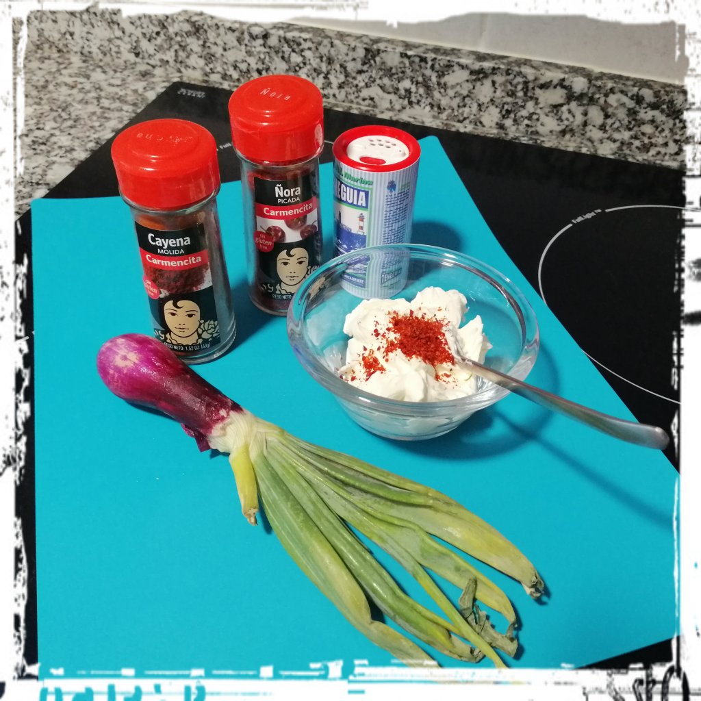 1 TL getr. feingehackte Nora Picada (Niora Picada) verrühren, dann die Frühlingszwiebeln leicht unterheben