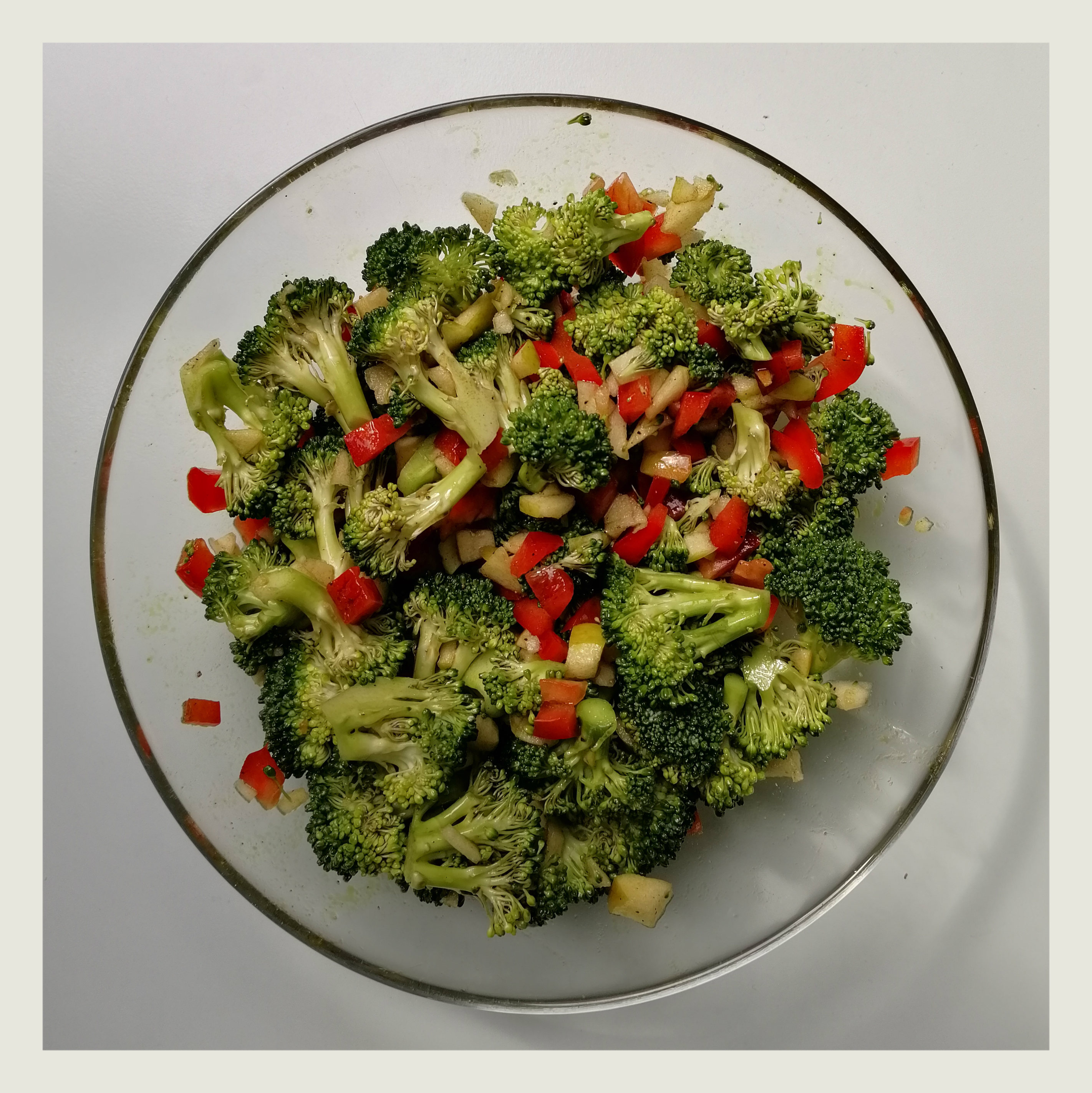 1/2 Brokkoli (nur die Röschen ca. 100 g) in kleine Stücke schneiden,