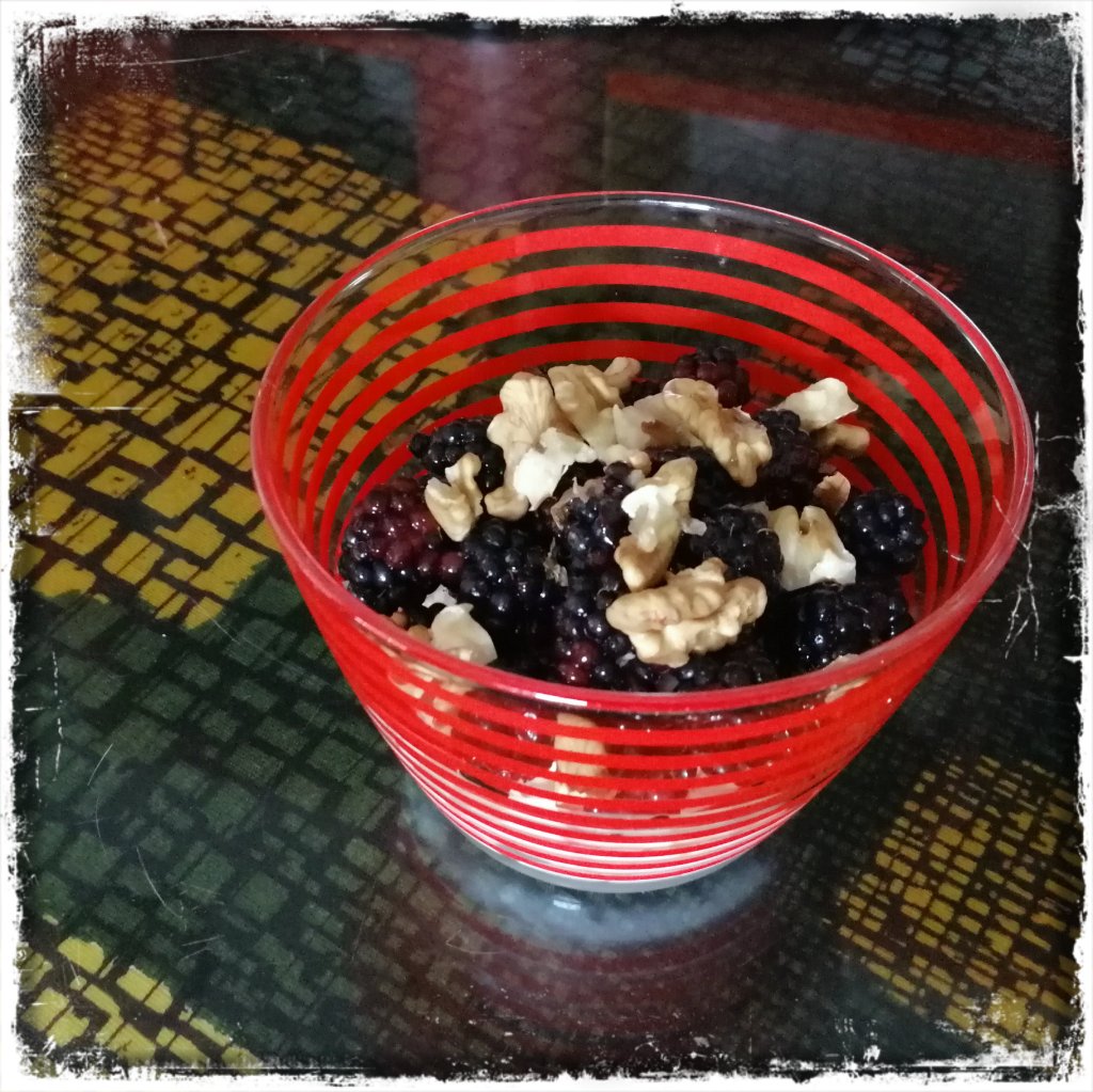 3 Handvoll Wild-Brombeeren (es gibt derzeit so viele, sonst eben Kultur-Brombeeren) darüber geben, mit